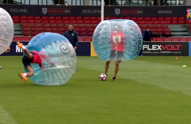 Keď Lionel Messi, Luise Suarez a zvyšok futbalového giganta FC Barcelona vstúpili na futbalové ihrisko St. George Park (Newport, Anglicko), tam ich čakal nezvyčajný pohľad. Na greene ich okrem futbalových lôpt čakali aj lopty na behanie (tieto body zorbis). Tréner Luis Enrique pre nich pripravil veľmi špeciálny tréning a hráči sa bavili ako malé deti.