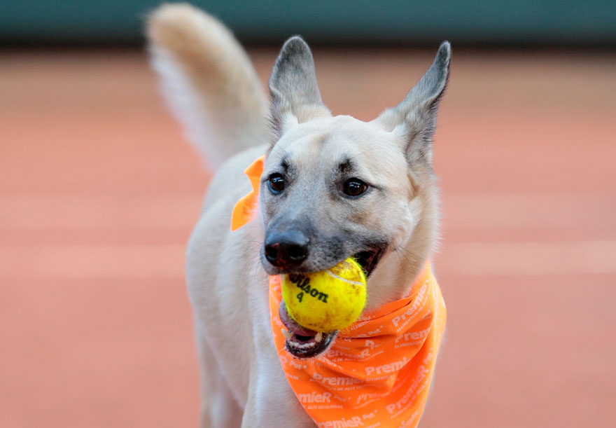 Štyri psi iz zavetišča so se nedavno preizkusili kot pobiralci teniških žogic. Namesto običajnih pobiralcev in pobiralk so Frida, Costela, Mel in Isabelle vskočili na ogrevalnem delu dvoboja med Špancem Robertom Carballesom in Portugalcem Gastãom Eliasom na odprtem prvenstvu Brazilije.