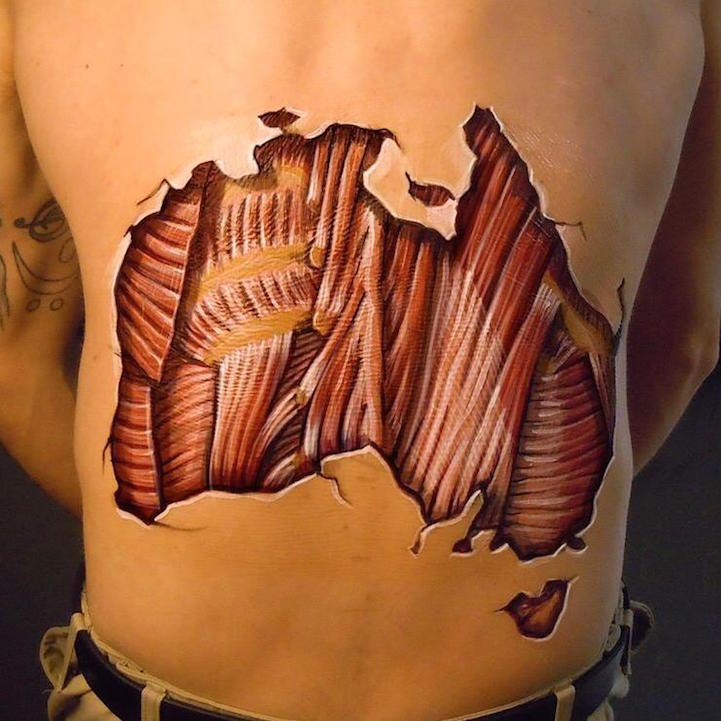 Danny Quirk je umelec, ktorý používa tekutý latex, akrylové farby a fixky na zobrazenie toho, čo sa skrýva pod naším najväčším orgánom – našou kožou. Jeho realistické ilustrácie, ktoré kreslí priamo na telá svojich modeliek v štýle „bodypaint“, odhaľujú svaly, tkanivá a orgány a živo zobrazujú vnútorné fungovanie našich tiel. Pozrite si Dannyho anatomické maľby v galérii a presvedčte sa sami, že jeho dielo je umenie s pridanou hodnotou, pretože má schopnosť učiť o fungovaní našich tiel…