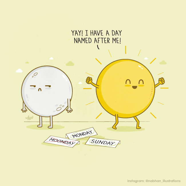 Frázy a frázy, ktoré pravidelne a nevedome používame neustále, si Nabhan Abdullatif očividne reprezentuje a interpretuje úplne doslovne, a keď tieto slovné hry dá na papier (alebo obrazovku), výsledkom je táto roztomilosť: