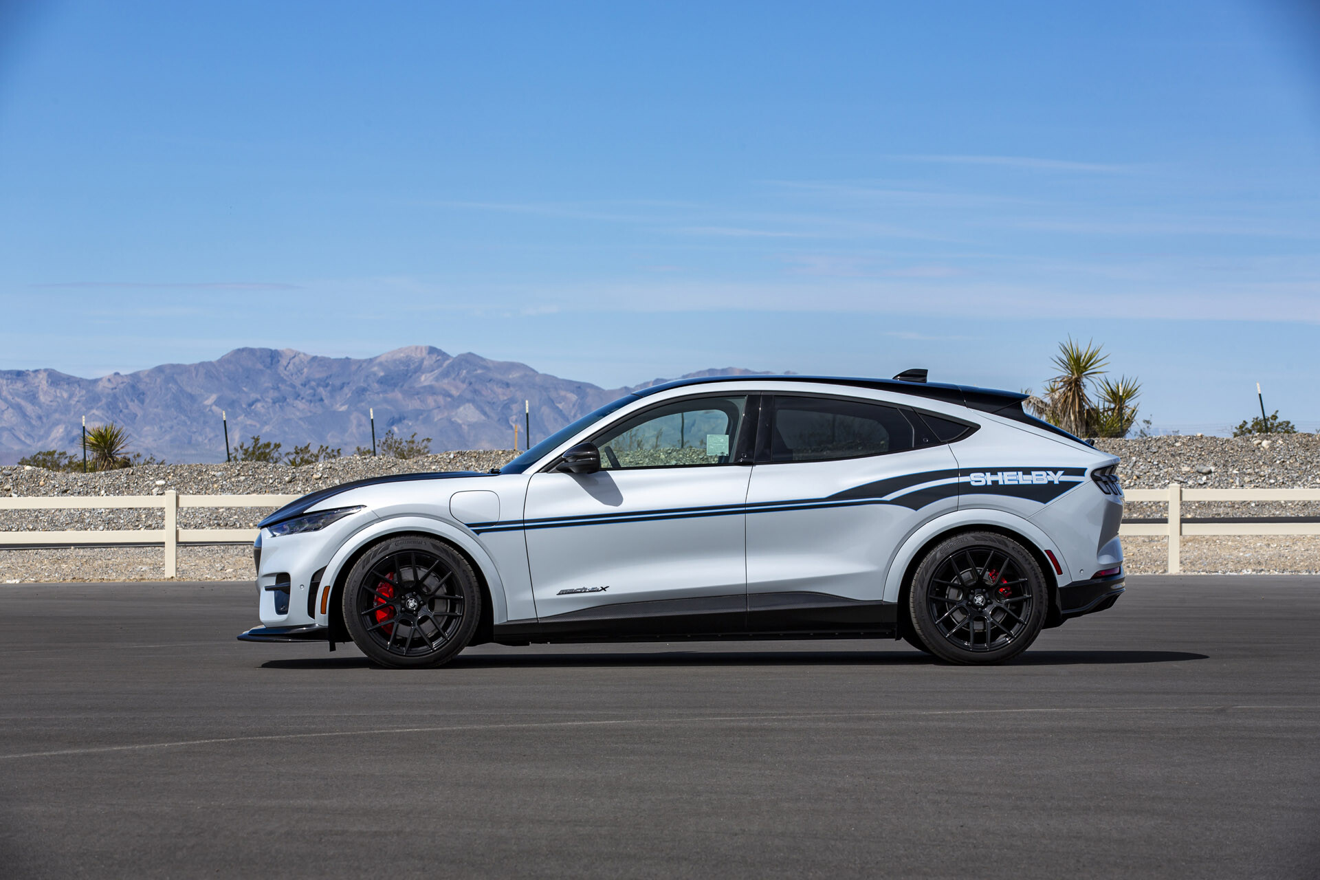 Toto elektrický crossover s pohonom všetkých štyroch kolies, podľa modelu Ford Mustang Mach-E GT, sa môže pochváliť pôsobivým 480 koní. Balík Shelby ide o krok ďalej tým, že zlepšuje ovládateľnosť a štýl SUV. Vozidlo bolo znížené o palec (2,54 cm) a ľahšie, vďaka použitiu komponentov z uhlíkových vlákien a ľahších kolies. K zníženiu hmotnosti prispela kapota z uhlíkových vlákien, predný spodný splitter, predná maska, kryty zrkadiel a spodné obloženie dverí.