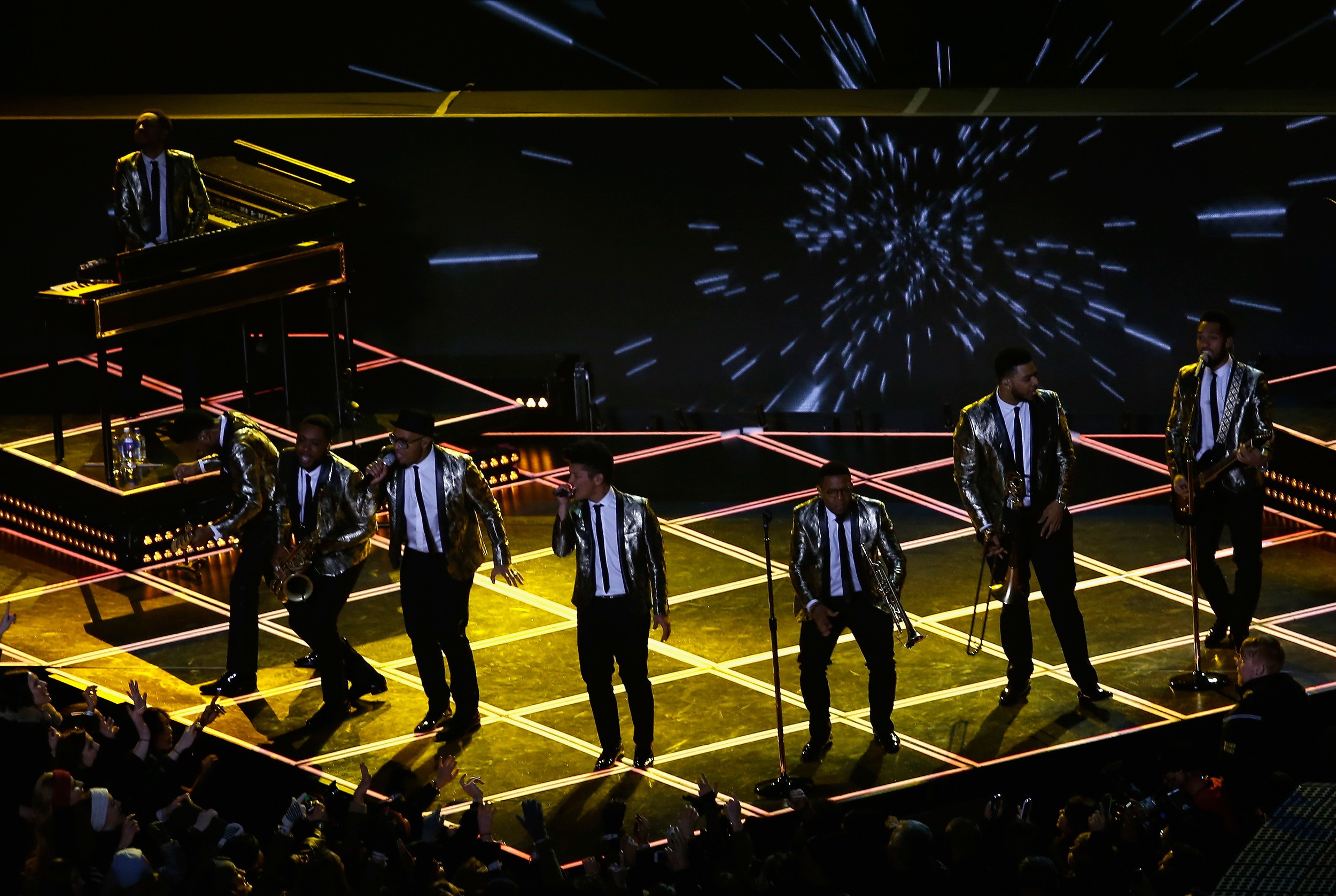 Na oder MetLife stadiona v New Jersyju, kjer so v preteklosti zablesteli legendarni glasbeniki, kot so Michael Jackson, Aerosmith, Princ, Madonna a Beyonce, je tokrat stopil Bruno Mars, dobitnik letošnjega Grammyja za najboljši pop vokal in izvajalec, katerega pesmi naj bi bile v minulem letu največkrat nelegalno prenešene s spleta.