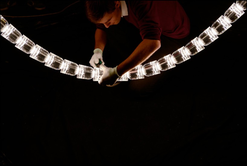 Bleščeča inštalacija, ki v višino meri kar 12 metrov in tehta pol tone, je bila v palači iz 17. stoletja nameščena kot prvi stalni sodobni umetniški eksponat. Francoska oblikovalca sta iz 800 kristalnih modulov, nanizanih okoli nerjavečega jeklenega ogodja, ustvarila viseč LED svetlobni sistem. V svoji minimalistični eleganci tako čez dan nudi lebdenje kristalnega svetlikanja neskončnih vzorcev, ob večerih pa poskrbi za mehkobo toplega vzdušja.