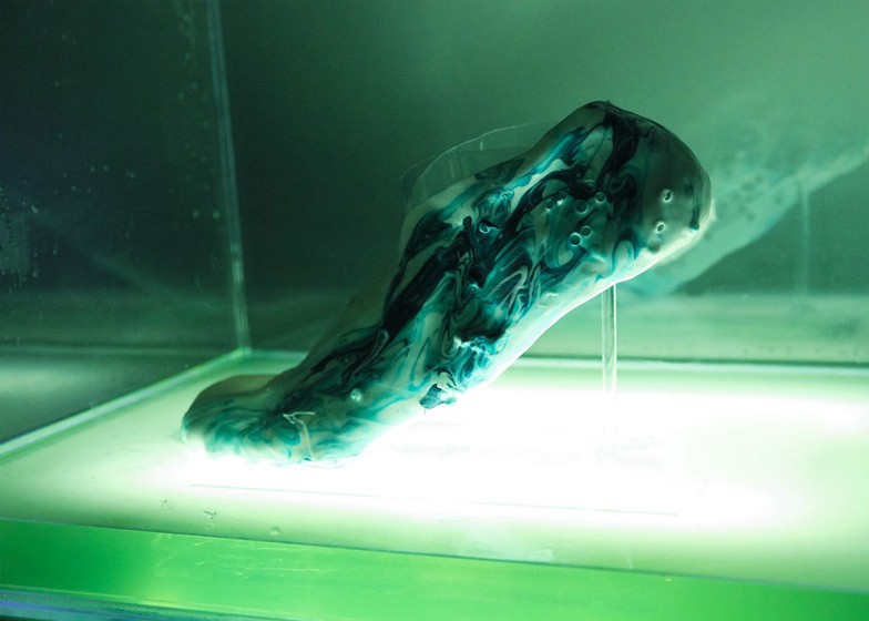Londýnsky dizajnér a výskumník Shamees Aden vyvíja koncept bežeckých tenisiek vyrobených zo syntetického biologického materiálu, ktorý by mal schopnosť regenerácie.