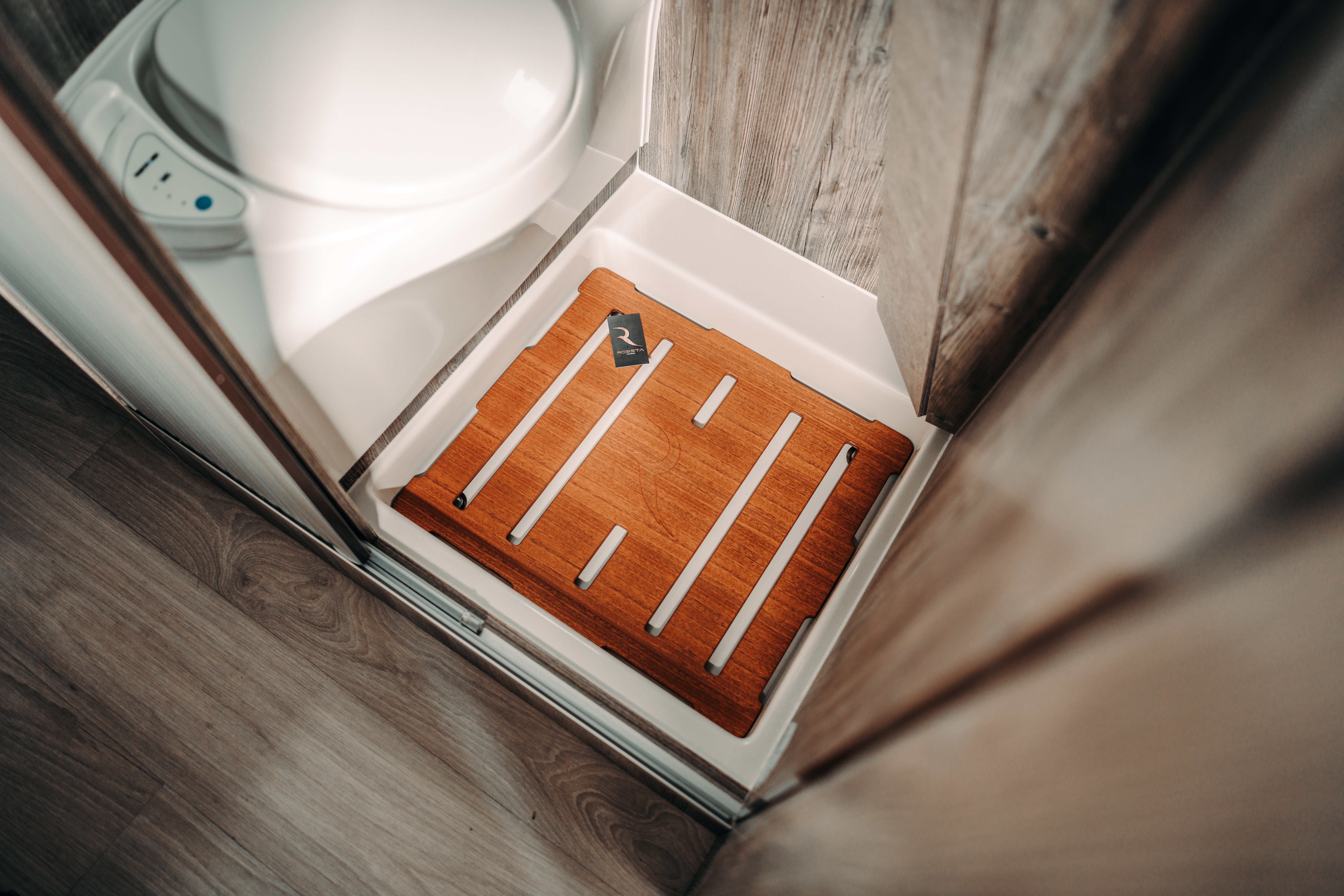 Ku komfortu tepla prirodzene patrí aj teplá voda, z ktorej pri sprchovaní nebol problém 100 litrová nádrž na čerstvú vodu. Túto možnosť sprchovania sme teda využili s výhodou. Pretože sme karavany Robeta Helios testované v Taliansku (tento záznam bude zverejnený neskôr), nemali sme problémy s vypúšťaním sivej vody ani s čistením kazetového chemického WC, keďže Taliansko je krajinou campervanovej kultúry. Robeta Helios bohato vybavila veľkou nádržou na „sivú vodu“, ktorá sa na vhodnom mieste uvoľňuje stlačením tlačidla elektronicky, rovnako ako väčšina moderných obytných prívesov.