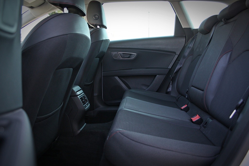 Notranjost je pričakovano športna, razlik v primerjavi s petvratno različico pa praktično ni. Sredinska konzola je malenkost obrnjena k vozniku, njegov delovni prostor pa je športno zasnovan in takšnega izgleda. Izdelava, materiali in ergonomija so med najboljšimi v segmentu. Leon prinaša veliko tudi na področju napredne tehnike, kjer vam za znamko zmerno ceno ponujajo večino danes znanih asistenčnih ssitemov vse od: radarskega tepomata, sistema za nadzor prometa front assist, in funkcijo samodejnega zaviranja v sili, sistema lane assist in parkirne asistence.