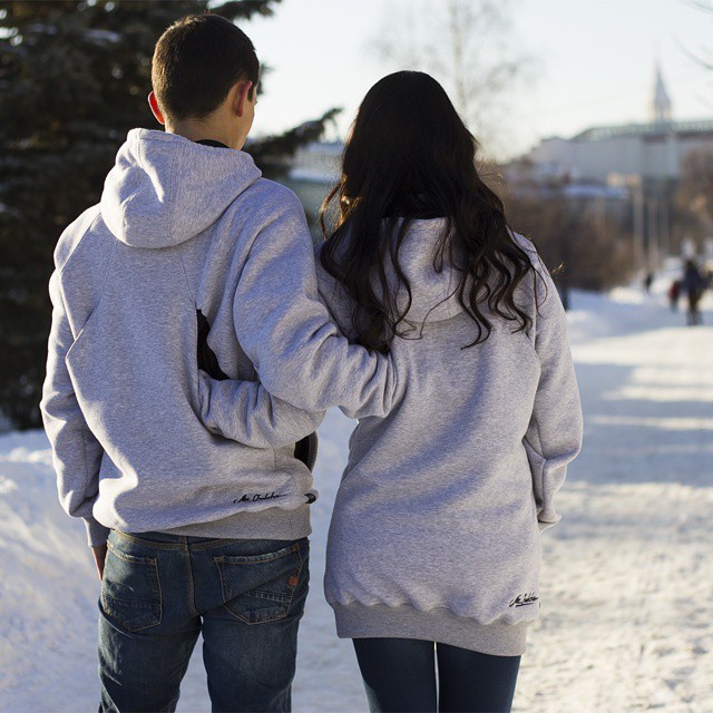 Together Wear to je majica za stiskanje. Kaj to pomeni? To pomeni deljenje topline z bližnjim. Dobesedno! Ta majica s kapuco ima namreč tudi zadaj žepek za roke, ki pa ni namenjen lastnim rokam, temveč rokam ljubljene osebe, ki jih tja lahko skrije, ko te objema, da ostanejo prijetno tople, če zunaj ni najtopleje.