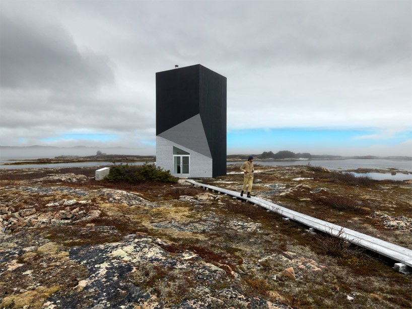 50 kvadratnih metrov veliko pribežališče Tower Studio ima izvenzemeljsko arhitekturo, ki naravnost osupne. Leži na otoku Fogo, ki velja za eno prvih naseljenih območij v Kanadi in prav nič ne caplja zadaj v fascinantnosti. Saunders Architecture je na njegovo skalnato obalo postavil črno silhueto nenavadne geometrične oblike z le enim oknom, ki je istočasno okno in strešno okno. Naštejemo ji tri nadstropja in ni dostopna z avtomobilom. Do tja se iz glavne ceste kot jara kača vije lesena pot, ki se dviga nad močvirjem, s čimer ščiti ekosistem lišajev.
