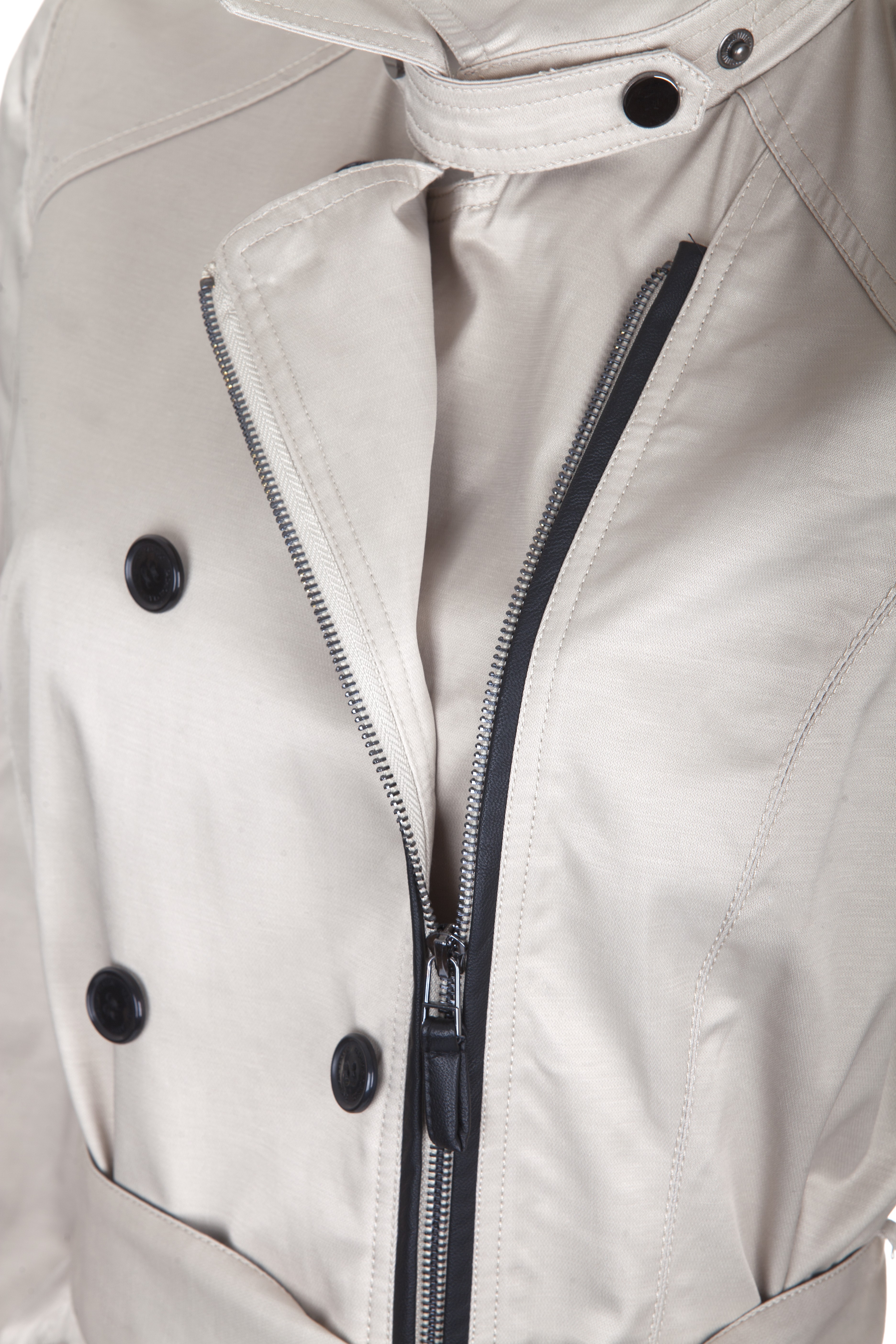 Marxov trenčkot z detajli iz umetnega usnja. Večni kos za ženske, ki spremljamo smernice in se zavedamo, da se modni zakladi skrivajo v detajlih. Pas iz tkanine in umetnega usnja je popolna pika na i trenčkotu. Za drzni videz naj bo naš ovratnik dvignjen, z epoletami pa bomo dale vedeti, da smo pravi modni general.