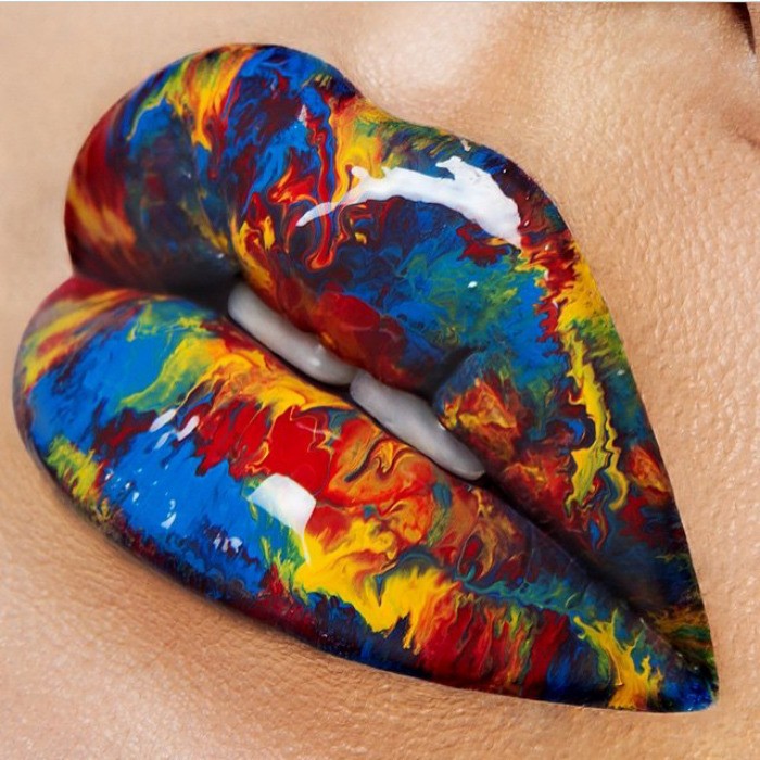 Niektoré dievčatá prisahajú na jednoduchosť bielo-sivá kombinácia, zatiaľ čo iné sa hrajú s farbami, ako napr. fialová a modráAj keď sa na prvý pohľad zdá, že ide o veľmi zložitú techniku líčenia, v skutočnosti je... celkom jednoduchéNajprv si stačí naniesť náter na pery. so základnou farbou, t. j. základnou, potom jemným štetcom nanášajte iné farby náhodnými ťahmi.