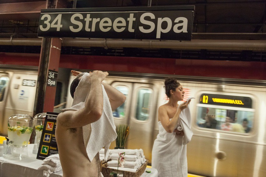 V poletnih mesecih je lahko na podzemnih postajah v New York vroče kot v savni. A zdaj ne več le metaforično, ampak tudi dobesedno, saj je na eni od platform, točneje na 34th Street, nastal podzemni spa center, ktorá ponúka sauna, masáže (tudi tako z vročimi kamni), improvizirano parno tuš kabino (z ročnimi pršilci), uteráky, voda in druge zdraviliške priboljške.