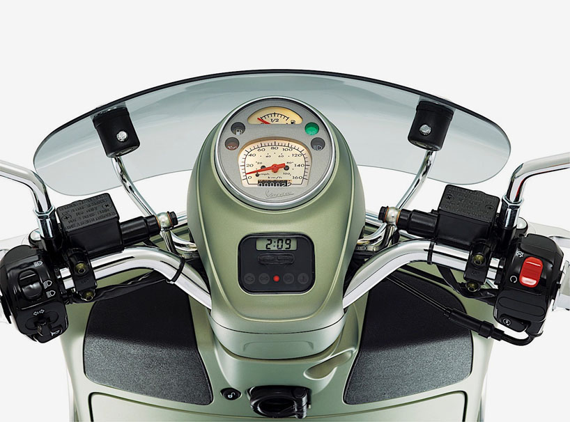 Vespa Šesť dní je vybavený sedadlom čalúneným v jemná čierna koža. Je ozdobená kontrastným prešívaním. Špeciálne sú aj ráfiky a grafika tieto ikony. Na palubnej doske kolobežky sa nachádza malý štítok so sériovým číslom modelu, okrem USB portu, ktorý je štandardný a nachádza sa v batožinovom priestore, má Sei Giorni sériové číslo ABS a LED-svetlá.