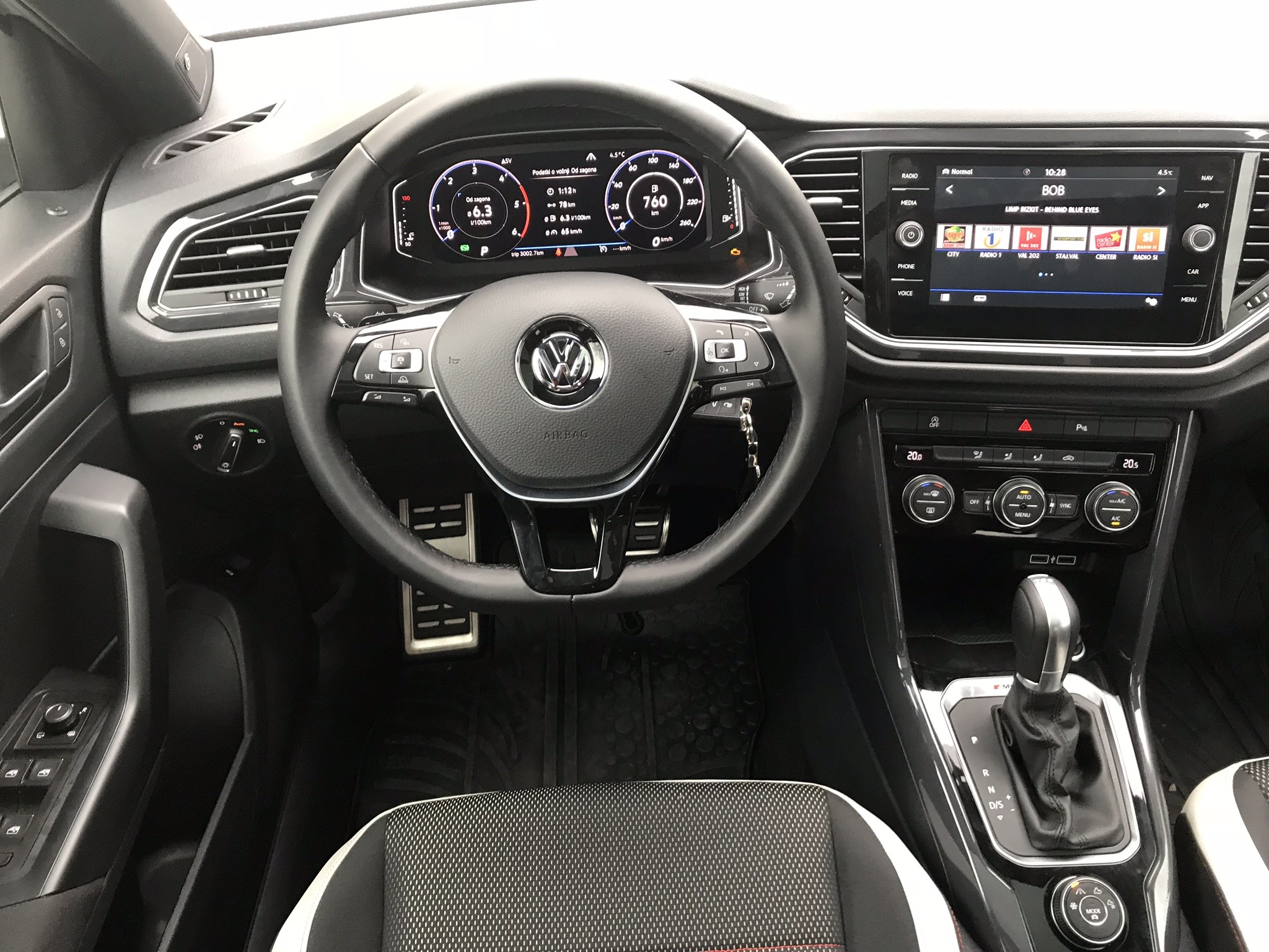 Notranjost T-Roca ima tradicionalen Volkswagnov dizajn. Je malo bolj sproščen, saj predstavlja T-Rock mlajšega, bolj živahnega brata Volkswagna Tiguana. Notranjost se ponaša z zračnostjo a priestrannosť, v njej pa prevladujejo vodoravne linije, ki imajo smisel v ergonomiji a funkčnosť. Volkswagen T-Roc ponuja tri nivoje opreme: T-Roc, Štýly a Šport. Le ti se ne razlikujejo zgolj po količini dodatne opreme, med seboj jih je mogoče ločiti po barvnih kombinacijah, litih platiščih in tudi spremenjenih malenkostih v dizajnu. Na voljo imamo dvojfarebné kombinácie, kjer so streha, ogledala in stebrički v drugi barvi kot preostala karoserija. Izbiramo lahko med 4 barvami strehe, 12 barvami karoserije in med platišči v velikosti od 16- do 18-palcev. Vsak nivo opreme ima svoje kombinacije, pri katerih se barvno ujema tudi notranjost. T-Roc ima prtljažni prostor v velikosti 445 litrov, kar je največ v segmentu. Ob podrtih sedežih se ta prostor poveča na 1290 litrov.
