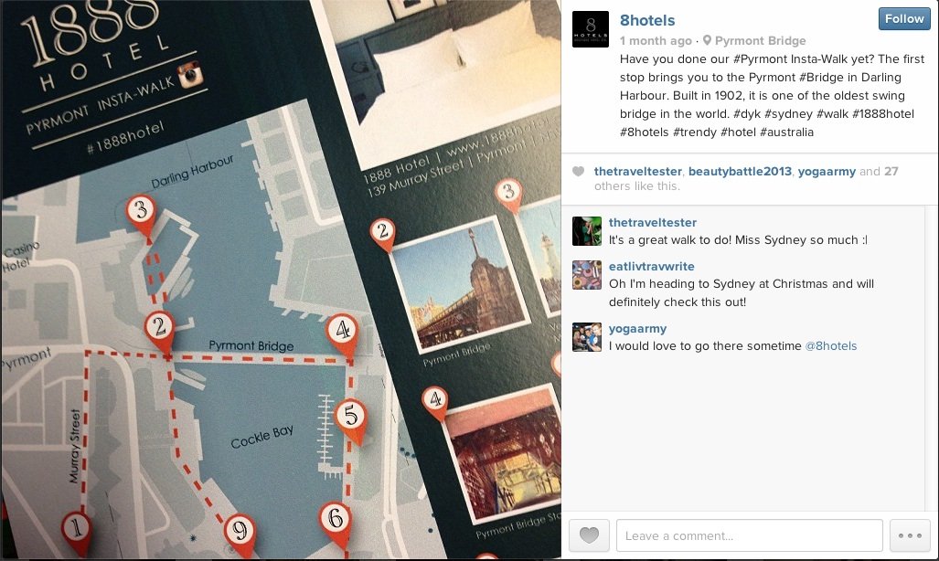 Vzhľadom na to, že používatelia mobilných aplikácií Instagram najradšej fotia prírodu a architektonicky zaujímavé objekty, to si majitelia hotela rýchlo uvedomili Hotel 1888. Hotel s viac ako 90 izbami si rýchlo podmanil online svet a spomedzi jeho 10-tisíc sledovateľov je každý mesiac vyžrebovaný jeden o pobyt zadarmo. Jediné, čo musíte urobiť, je označiť fotografiu odfotenú v hoteli #1888hotel.