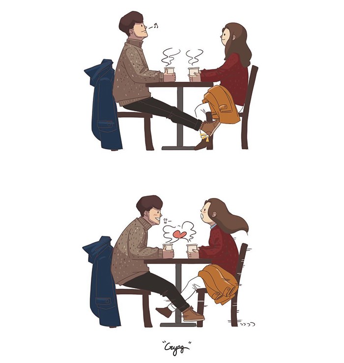 Južnokorejski umetnik Kyu-Young Lee je ustvaril zabavne ilustracije, s katerimi se lahko poistovetiš, če se tvoja ljubka punca rada ‘lepi’ nate. Če pa si v bolj osamljenem obdobju, te lahko ilustracije spodbudijo, da se odpraviš v svet poiskati svojo boljšo polovico.