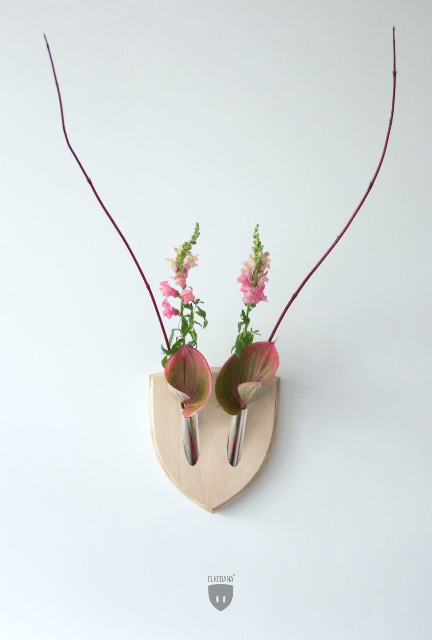 Zabudnite na trofeje mŕtvych zvierat a namiesto toho ozdobte steny svojho bytu kvetinovým umením „Elkebana“ od talianskeho dizajnérskeho dua Fabio Milito a Studio Paula. Ikebane, alebo "Elkebana" rastlinné trofeje, pozostávajúce z držiakov, ktoré sa spájajú s rohovými prílohami a akýmikoľvek kvetmi alebo vetvami, sú skutočnou pastvou pre oči.