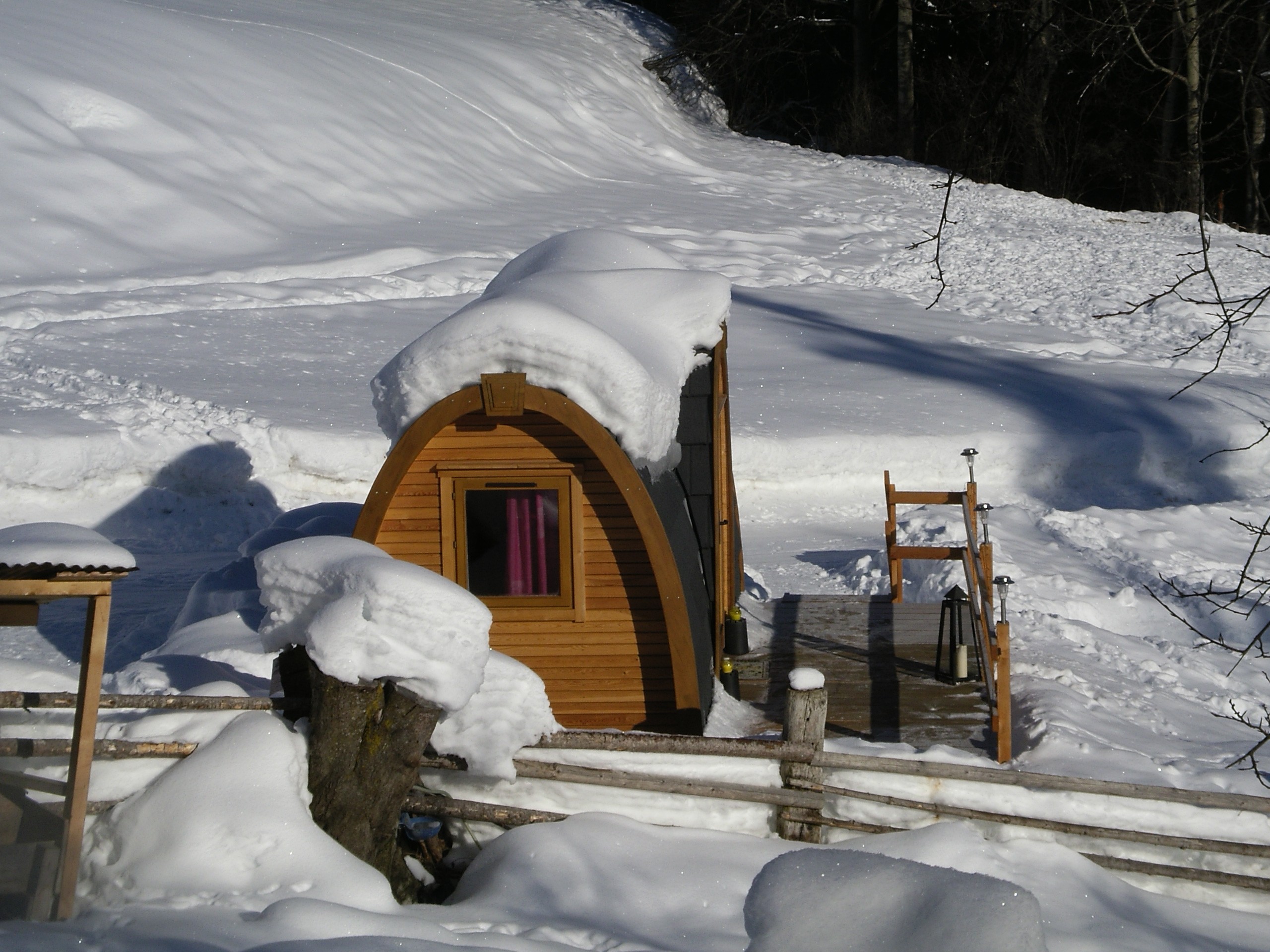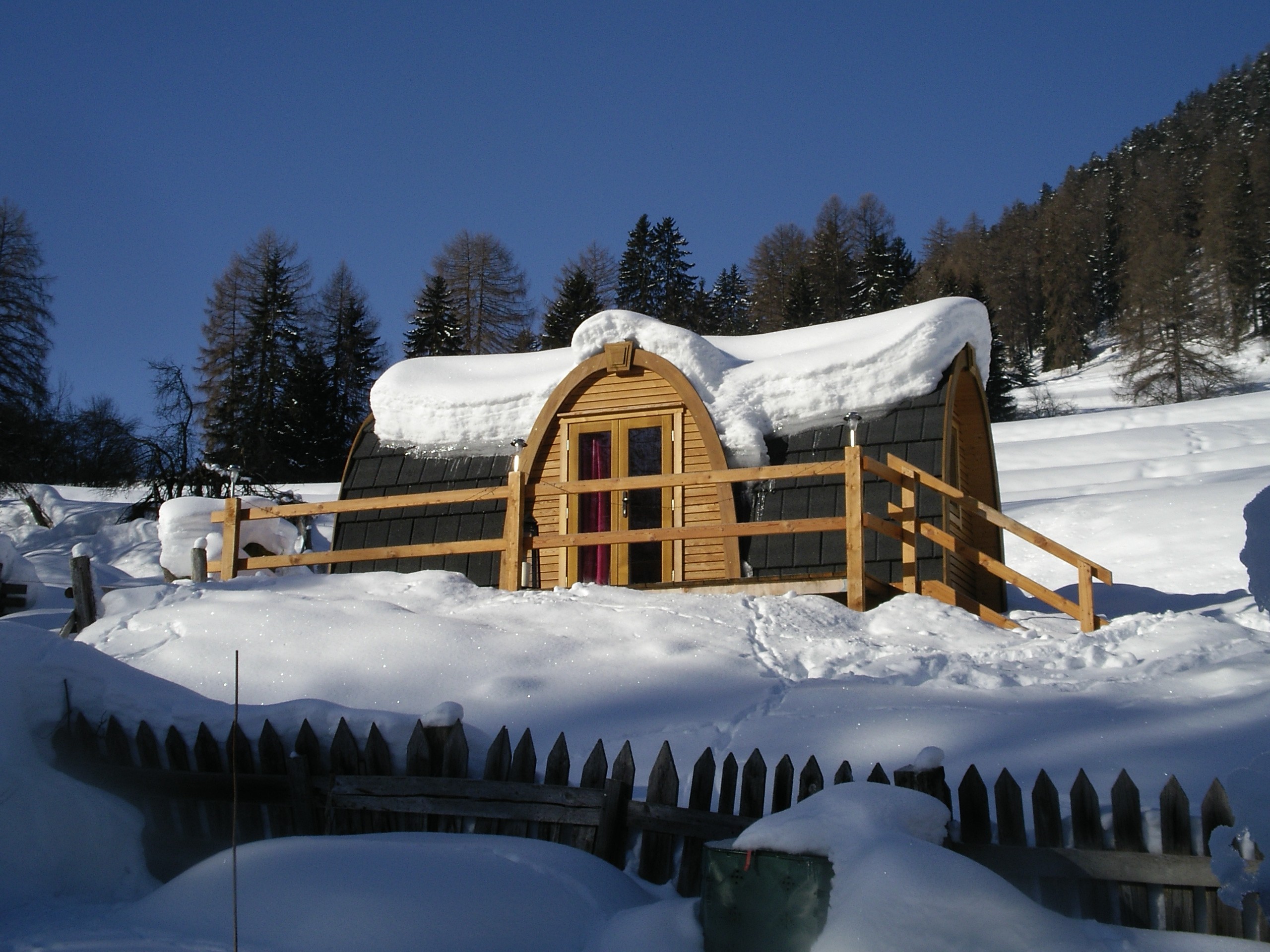 Hneď za hranicou v Astrii objavíme miniatúrny zimný domček uprostred panenskej prírody Ufogel. Dom, ktorý sa na prvý pohľad zdá menší ako naša kúpeľňa, má veľa tepla a pohodlný moderný interiér, ktorý spĺňa potreby celej rodiny.