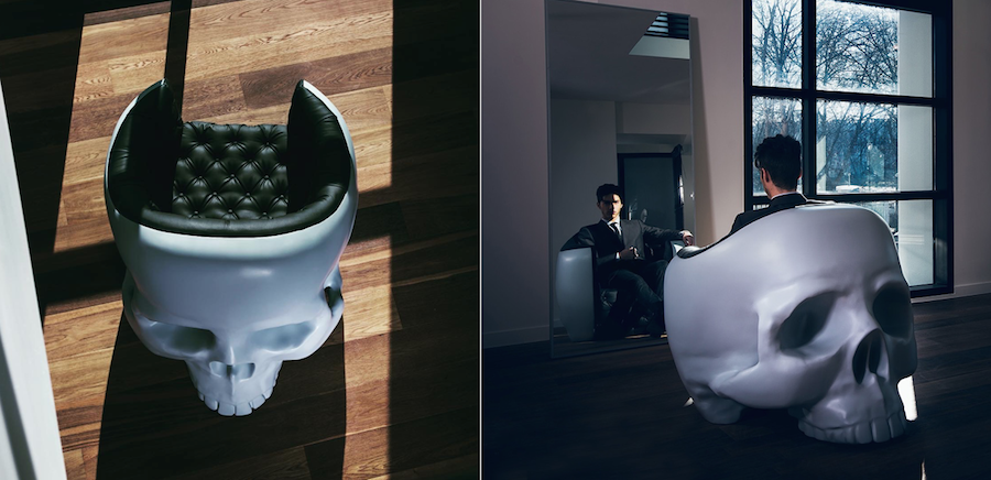 Všetci najväčší darebáci vo filmoch mali špeciálne stoličky, ktoré ešte viac zdôrazňovali ich zlo. Ak chcete mať takýto kúsok doma, odporúčame vám pouvažovať nad kreslom od parížskeho dizajnéra Gregoryho Bessona, ktorý vyrobil kreslo v tvare lebky. Sedieť alebo nesedávať v ňom, to tu nie je otázka!