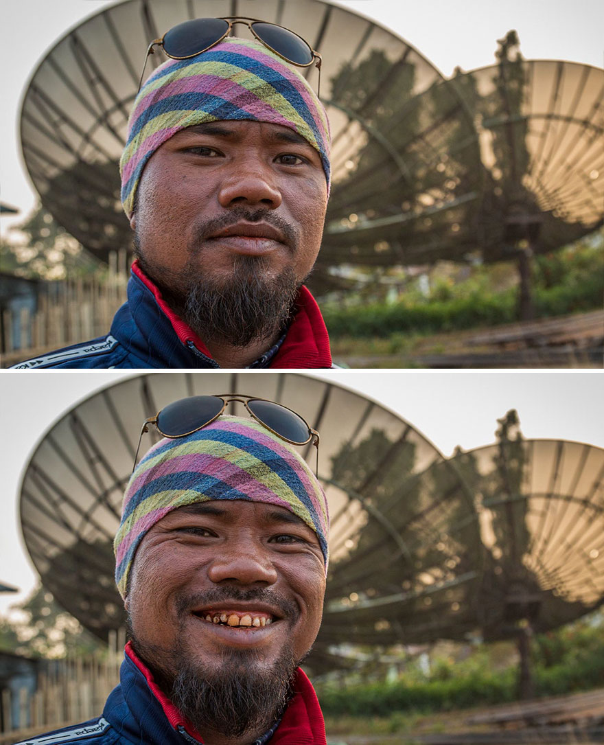 Tak som ich požiadal, aby sa usmievali to je séria portrétov cudzincov od fotografa Jaya Weinsteina dokazuje zázračná sila úsmevu. Pozostáva z dvojice fotografií tej istej osoby, z ktorých jedna je odfotená s vážnym výrazom na tvári a na ďalšej sú jej vtiahnuté ústa. široký úsmev, čo úplne mení naše vnímanie tejto osoby.