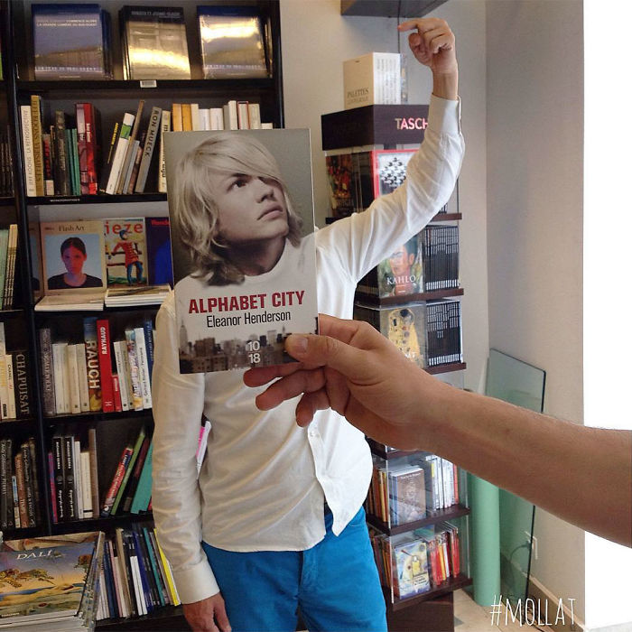 Delo v trgovini je lahko včasih dolgočasno, še posebej, če strank ni ravno veliko. Dandanes si večina čas krajša z brskanjem po spletu oz. ga zabija na Facebooku. Toda ne uslužbenci knjigarne Librairie Mollat v Franciji. Ti so postali prava spletna senzacija, po tem, ko so svoj Instagram račun zasuli s fotografijami, na katerih pozirajo z naslovnicami knjig, ki se uspešno zlivajo z resničnostjo.