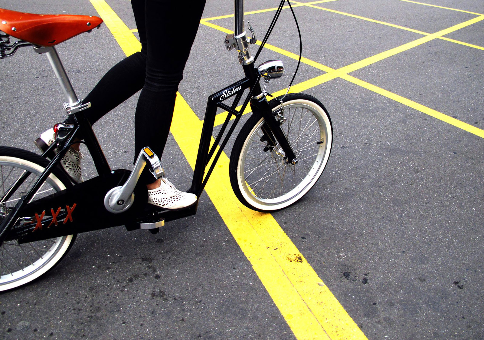 Sliders je zložljivo kolo, ki je istočasno tudi skiro. Njegov edinstven dizajn okvirja brez zgornje prečne cevi namreč ponuja možnost, da ga odrivamo kot skiro. Se sprašujete kje je uporabnost tega hibrid? Gre za briljantno pogruntavščino, posebej za velika mesta, kjer si pešci in kolesari velikokrat delijo prostor. Na takih krajih (peš cone, ipd.) je treba kolo običajno potiskati ob sebi, namesto tega pa ga lahko zdaj potiskate udobno kot skiro, kar je hitreje kot peš, a vseeno precej varneje za mimoidoče. Zložite ga z rahlo brco v pedal, s krmilom pa ga lahko do ''počivališča'' potiskate kot ročno kosilnico.