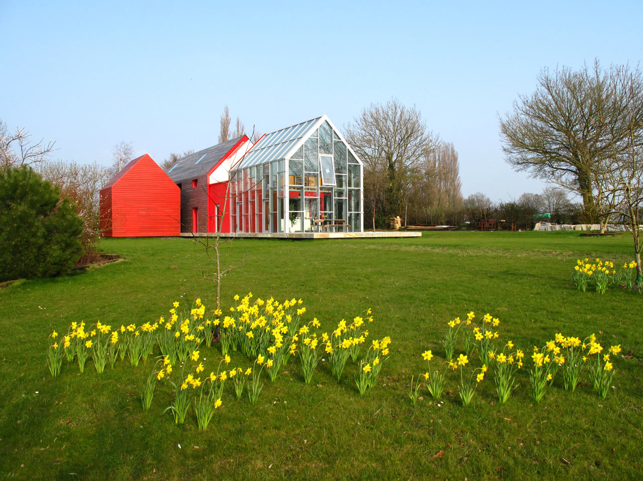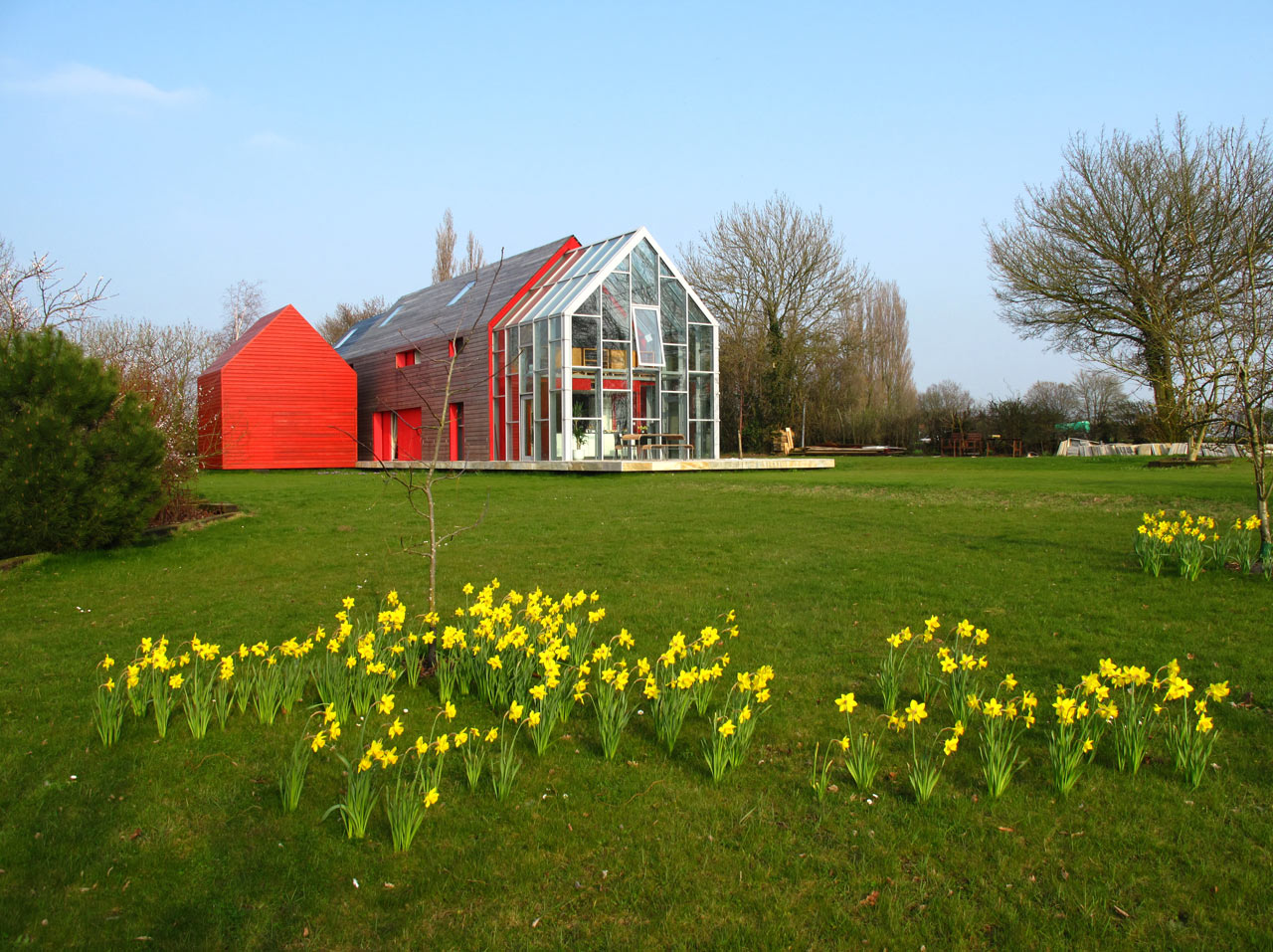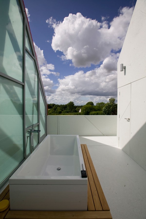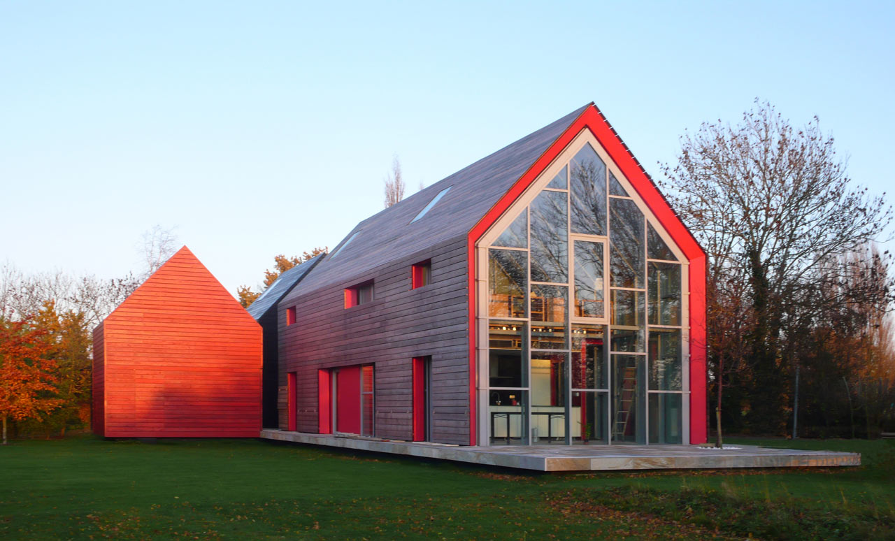 Arhitekturni biro dRMM je našel optimalno rešitev med standardno ter stekleno hišo, poimenovano Sliding House. Postavljena na podeželje, v Suffolk v Veliki Britaniji, je sestavljena iz glavnega dela hiše, dela za goste ter garaže. Enakovreden del hiše, če ne že najpomembejši, pa je 20-tonska mobilna streha, ki se premika po hiši. Struktura, postavljena na tračnice, je narejena iz jekla, lesa in izolacije, premika pa se preko prizidka, medtem, ko razkriva steklen del, ki nudi odprt pogled v nebo. Tako dobimo občutek prostornosti, bivanja na prostem, saj se steklena streha nadaljuje v velike steklene površine, ki odpirajo pogled v vse smeri. Strukturo poganjajo 4 skriti električni motorji, baterije, ki napajajo motorje pa se polnijo preko sončnih panel.