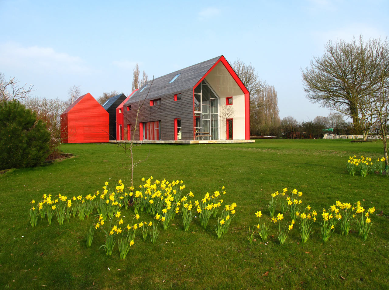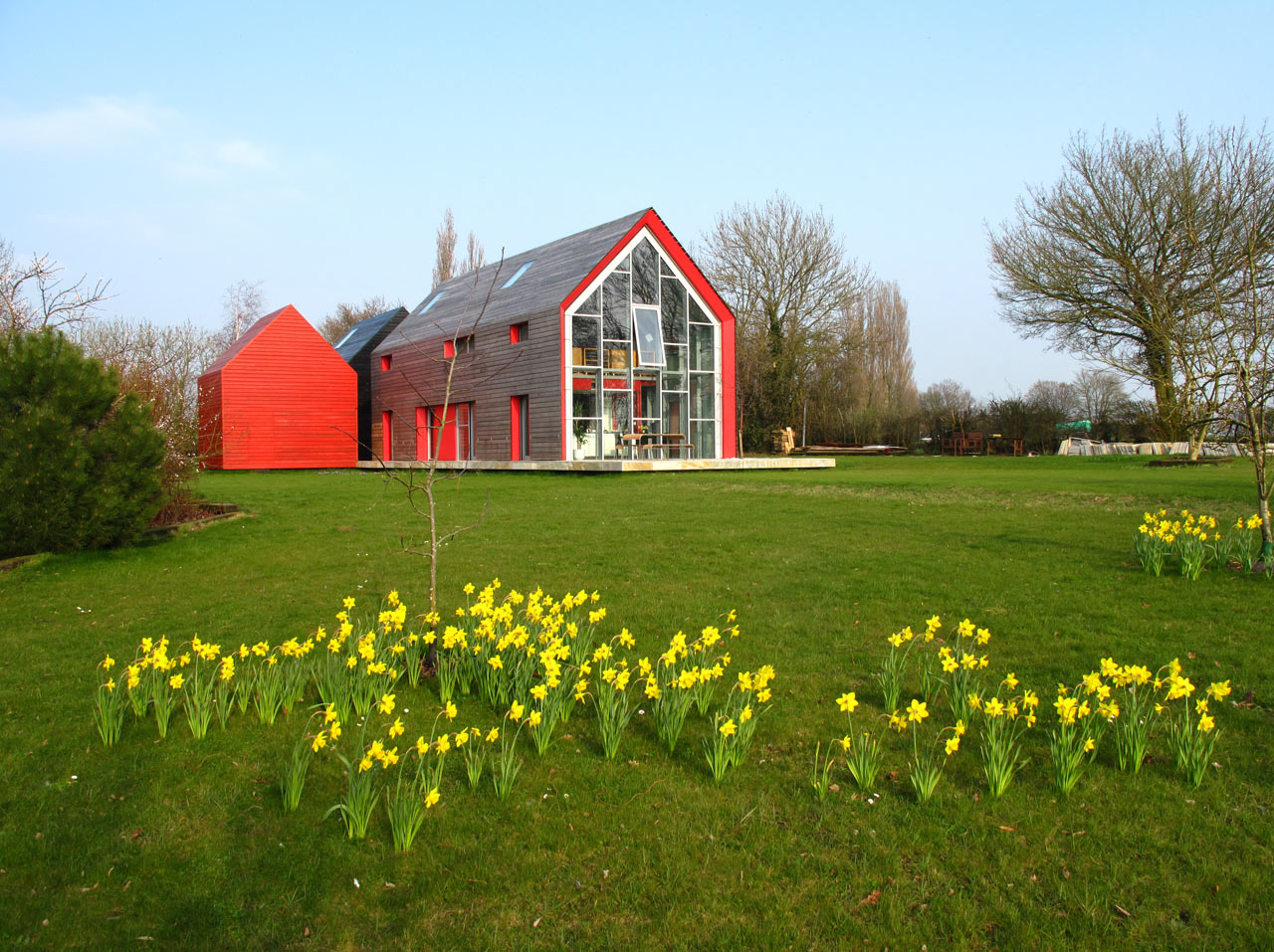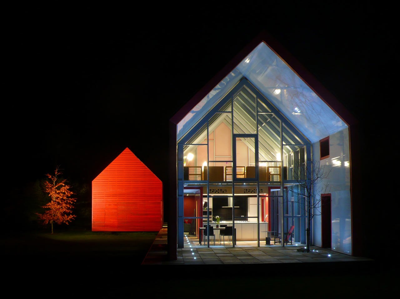 Arhitekturni biro dRMM je našel optimalno rešitev med standardno ter stekleno hišo, poimenovano Sliding House. Postavljena na podeželje, v Suffolk v Veliki Britaniji, je sestavljena iz glavnega dela hiše, dela za goste ter garaže. Enakovreden del hiše, če ne že najpomembejši, pa je 20-tonska mobilna streha, ki se premika po hiši. Struktura, postavljena na tračnice, je narejena iz jekla, lesa in izolacije, premika pa se preko prizidka, medtem, ko razkriva steklen del, ki nudi odprt pogled v nebo. Tako dobimo občutek prostornosti, bivanja na prostem, saj se steklena streha nadaljuje v velike steklene površine, ki odpirajo pogled v vse smeri. Strukturo poganjajo 4 skriti električni motorji, baterije, ki napajajo motorje pa se polnijo preko sončnih panel.