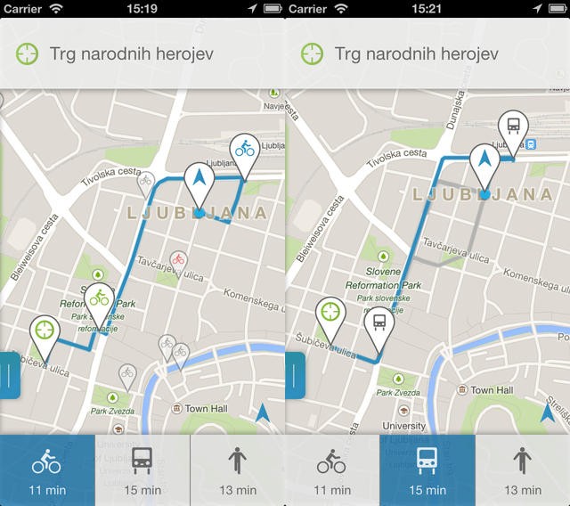 Brezplačna mobilna aplikacija »A do B: Ljubljana« za operacijski sistem iOS, ki so jo razvili v Regionalni razvojni agenciji Ljubljanske urbane regije ( RRA LUR) uporabniku na izredno enostaven način ponuja optimalne možnosti potovanja med poljubno izbranima točkama v Ljubljani.