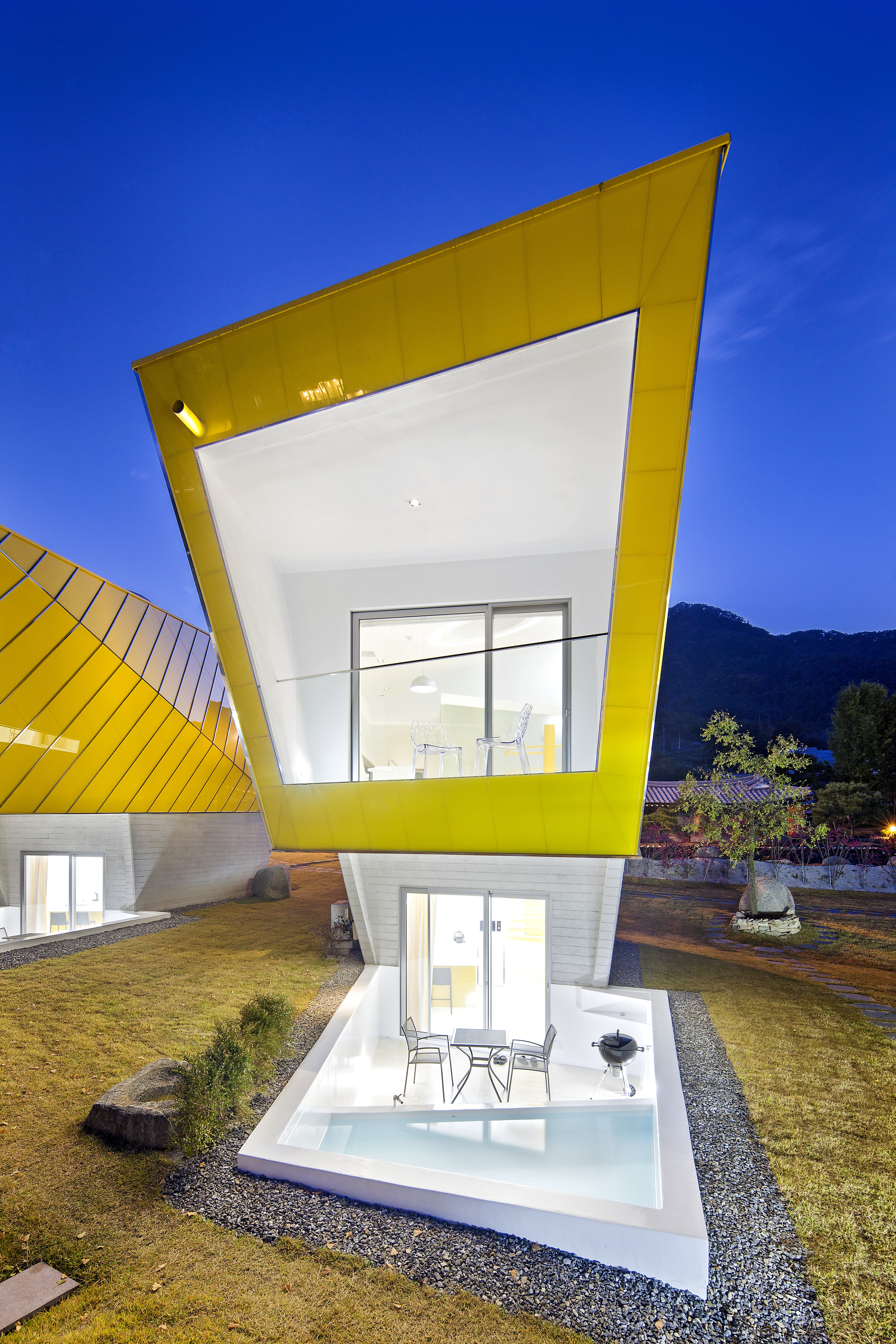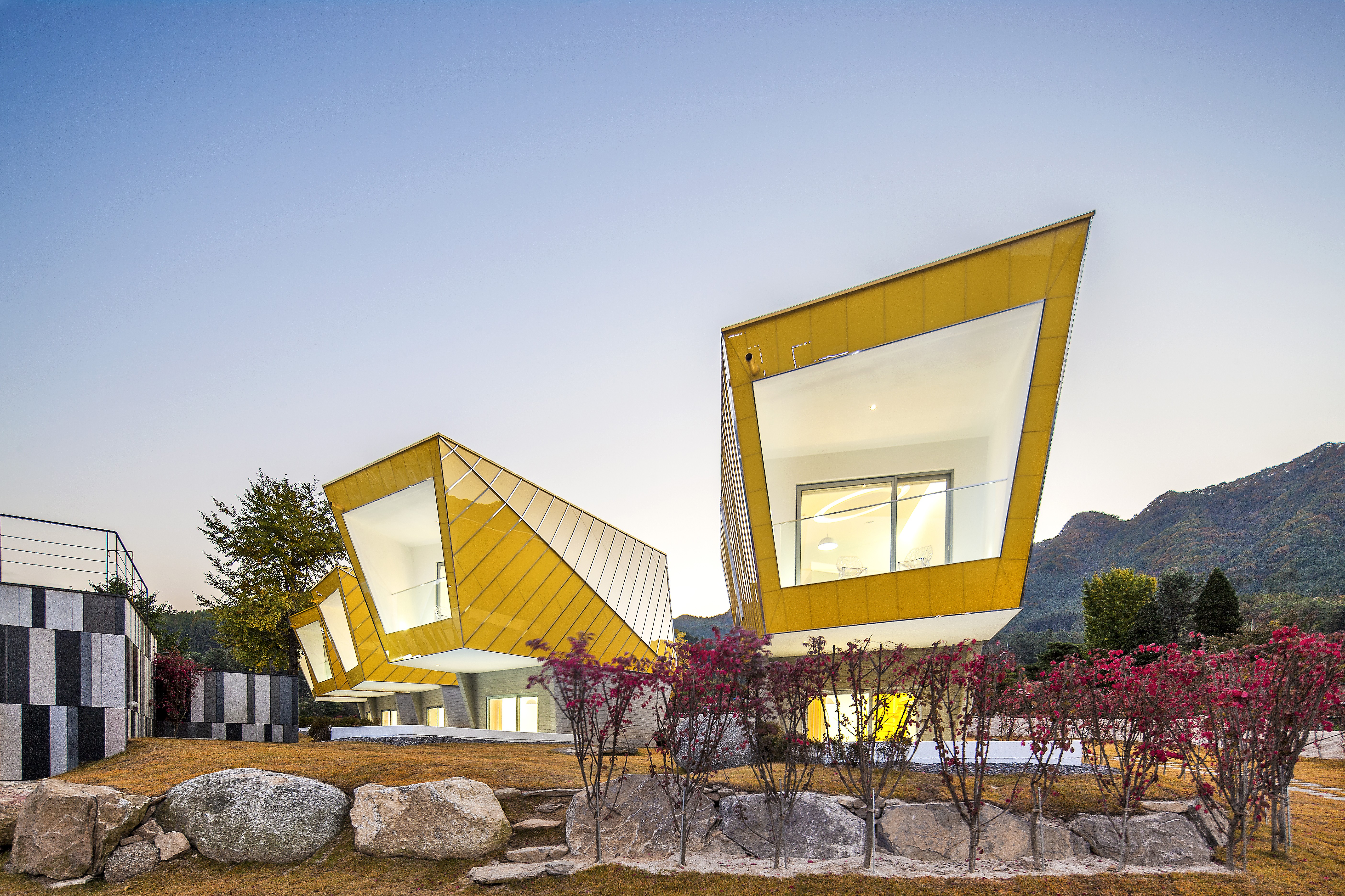 Pokrajina malo izven Seula razkriva pogled na majhno naselje sodobnih vikendov - živo rumenih hiš. Tega so postavili za nastanitev gostov, namenjenih v bližnji botanični park Morning Calm. Korejski arhitekturni studio Koossino, ki so mu zaupali arhitekturno zasnovo, je našel navdih v skrivnostnih kipih, Moaih, zaradi katerih je Velikonočni otok na seznamu UNESCO-ve zavarovane svetovne dediščine.