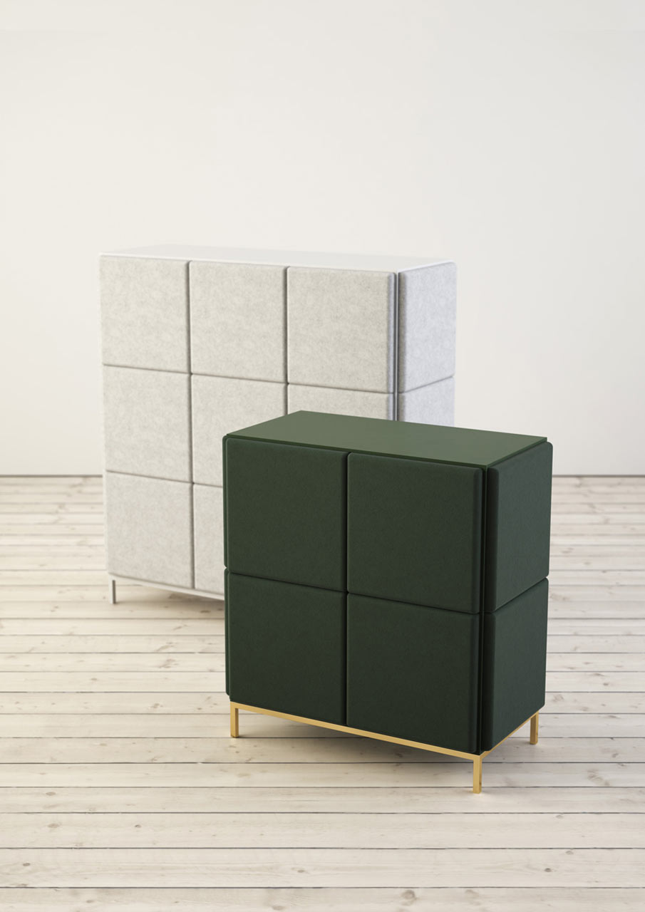 Johan Kuppi in Bertil Harström sta oblikovalca, ki sta za švedskega pohištvenega ponudnika Glimakro oblikovala sodobno kolekcijo kockastega pisarniškega pohištva “Sabine”, ki obdano v filc zmanjšuje hrup v odprtih prostorih.