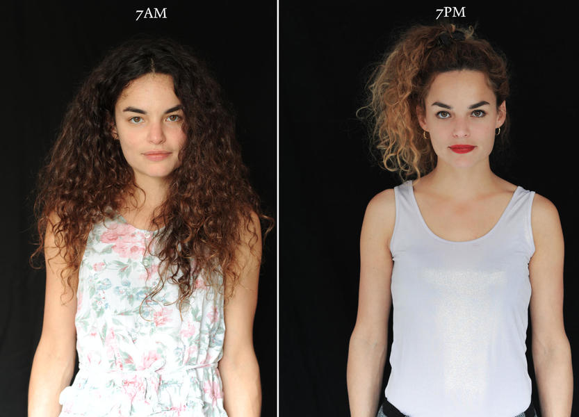 Morgon och kväll vi människor är en helt annan person, åtminstone utseendemässigt. Detta ämne lockade den belgiske fotografen Barbara Iweins, som är på exemplet med porträtt (serier 07.00–19.00) visade otroligt stilförvandling under dagen, vilket vi inte ens är medvetna om. Din egen porträtt hon fångade sju på morgonen och sju på kvällen.