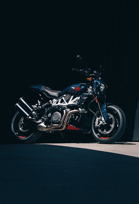 Detta unika fordon är resultatet av ett samarbete mellan Indian Motorcycle och det välkända solglasögonmärket. 2024 Indian FTR x 100% R Carbon har ett antal uppgraderingar jämfört med standardmodellen FTR R kol. Det speciella är de blå kolfiberkroppsdelarna, som kontrasterar mot det exponerade chassit målat i mjukt vitt. Motorcykeln är utrustad med samma 120-hästars 1 203 cc V-Twin-motor som standardmodell och inkluderar ett antal komponentuppgraderingar, inklusive helt justerbar svart Öhlins-fjädring fram och bak och ett svart titanium Akrapovič-avgas med kolvärmesköld.