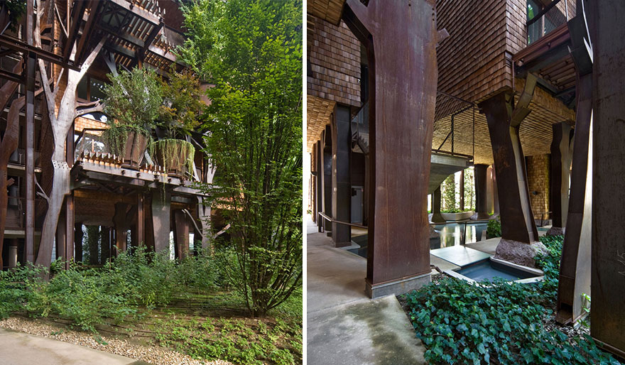 Innovativ design urbana trädhus 25 Verde, som, omgiven av träd, skyddar sina invånare från buller och dålig luft, är ett verk av en italiensk arkitekt Lucianapaj. En idealistisk visionär, övertygad om att människor kan leva i harmoni med naturen även i den urbana djungeln, i förverkligandet av sin "gröna" vision, skapade han 25 Verde, ett bostadskomplex som finns i Turin, Italien. Utsidan av den fem våningar höga byggnaden pryds av en veritabel vertikal skog, eftersom arkitekten föreställde sig en byggnad omgiven av träd och fungerade som drömträdhus för vuxna. 25 Verde är det rätta valet för alla som ville ha en egen trädkoja som barn, eftersom den erbjuder sina invånare möjligheten att dra sig tillbaka till en fristad 150 träd, som inte bara har en estetisk funktion, utan också skyddar huset från stadens buller och föroreningar.