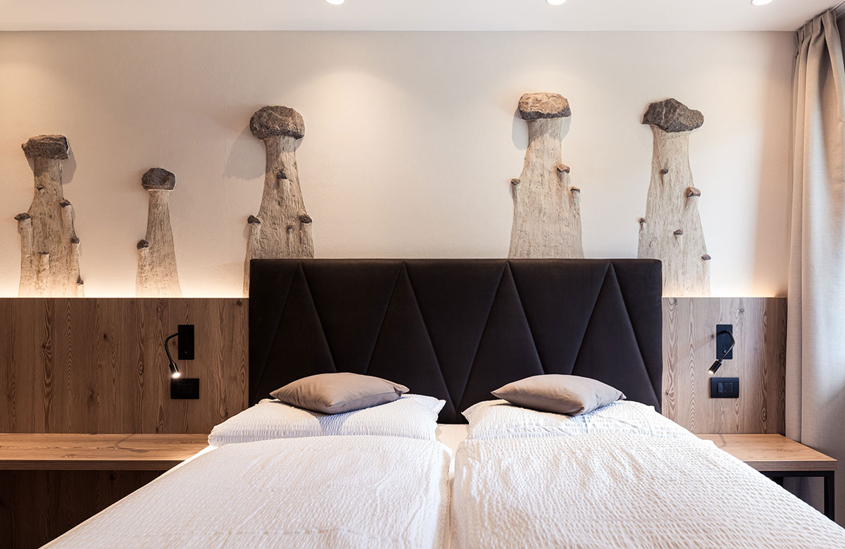 Hotel Steger-Dellai den håller ett vakande öga över de doftande ängarna, och bakom den reser sig de närliggande bergens mäktiga toppar. Dessa kan också observeras från rummens vackra utsiktsterrass och balkonger, varifrån du kan njuta av en vacker utsikt över den omgivande naturen. Hotellet tror på samexistens med omgivningen, och det kulinariska urvalet av rätter baserade på autentisk sydtyrolsk mat är lämplig för detta. Hotellet har även en hälsoavdelning som sträcker sig över hela 2 000 m2 och erbjuder många bastur och bad, till och med aromaterapi och en Kneipp-bana med en kall grotta.