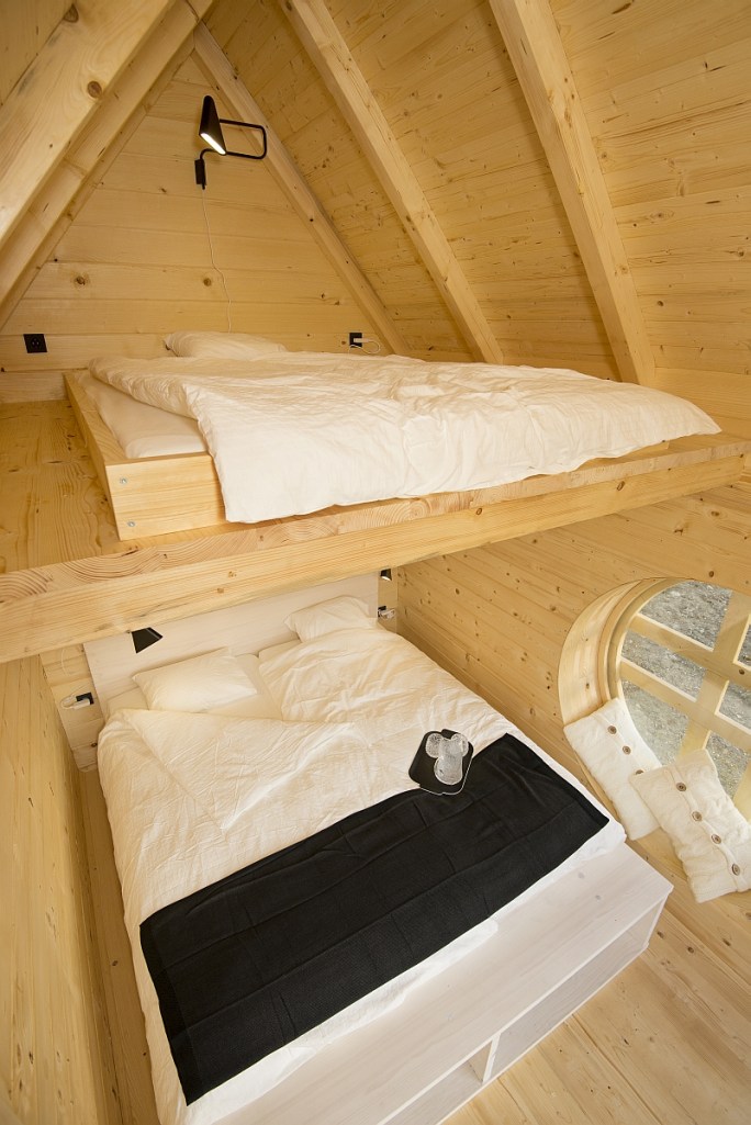 Idilične počitniške bajtice so postavljene ob rob pšeničnega polja. Imajo okrogla okna in velika vhodna vrata iz stekla. Glavni gradbeni material je les, ki je tudi materialna osnova pohištva, so še povedali v biroju Landscape, d. o. o., ki ga vodita Tina Demšar Vreš och Grega Vreš, kjer so hiške zasnovali. Strnjena notranjost glamping bivališč seva neskončno mero topline, lagodnost in ubranost.