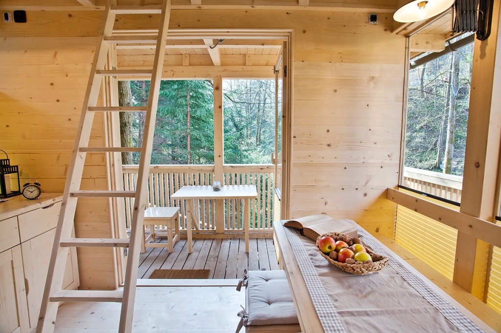Lesene hiške za štiri na zunaj morda delujejo skromno, a njihova notranjost ne štedi s stilom in udobjem, saj premore čajno kuhinjo, postelje, jedilno mizo, balkon in večnamensko mrežo, primerno za zibanje, sproščanje in celo plezanje. Pravljičnost vzdušja ob večerih dopolni soj lampijončkov, ki kot elegantni uhani visijo na mini terasi. Vse hiške so tvåvånings, i en stöter du till och med på en trädstam. Den här är reserverad för nygifta. Trädhus pa so zgolj košček Garden Villagea, saj v naselju Kvarn, kjer se nahaja, najdemo tudi šest glamuroznih šotorov, devet šotorov na pomolih, luksuzna apartmaja, restavracijo z žuborečim potočkom, finsko savno, naravni biotop in masažni paviljon. Zdi se, da različne ponudbe kar ne zmanjka. Ne manjka niti čudovita restavracija Vrtnarija, ki temelji na sezonski in lokalno pridelani hrani. Pri kuhaju ne uporabljajo aditivov in ojačevalcev okusa, prijazno osebje pa vam bo postreglo z najbloljšim, kar premorejo lasten vrt in lokalne kmetije. Čeprav je restavracija del glampinga, je na voljo tudi zunanjim gostom.