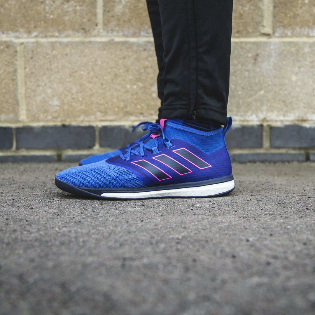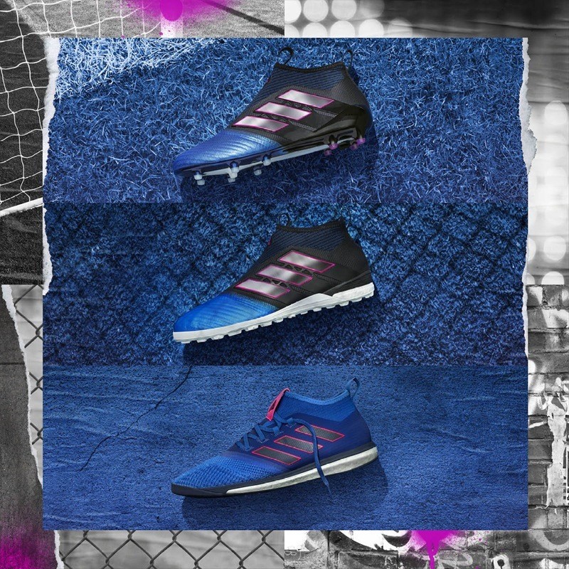 Gatuspelversion ACE 17 Street medför ytterligare en revolutionerande innovation – adidas BOOST™-dämpningsteknikSulan är tillverkad av termoplastisk polyuretan (TPU), vilket säkerställer maximal energiåtergivning vid varje steg. De blå stövlarna med rosa detaljer är tillverkade av PRIMEMESH-material, vilket ger ett ännu mer slående utseende.