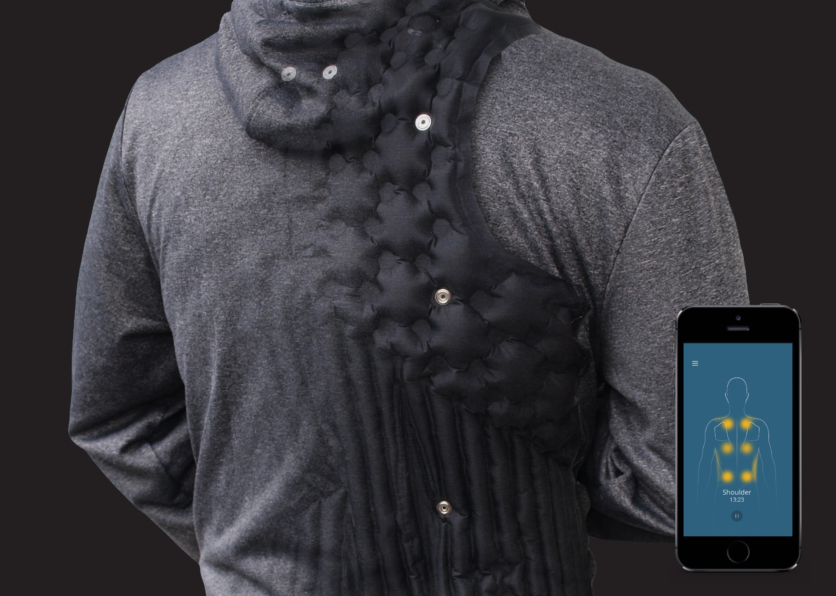 Poleg masaže ocenjuje držo vašega telesa in ukrepa, ko zazna, da se grdo držite. Baterija zagotavlja triurno avtonomijo, napolni pa se v dveh. Masažno majico upravljamo med en smartphone, prednaročite pa jo lahko na platformi za množično financiranje Kickstarter za (preračunanih) 115 euro. Na voljo je tudi nekoliko cenejši telovnik.