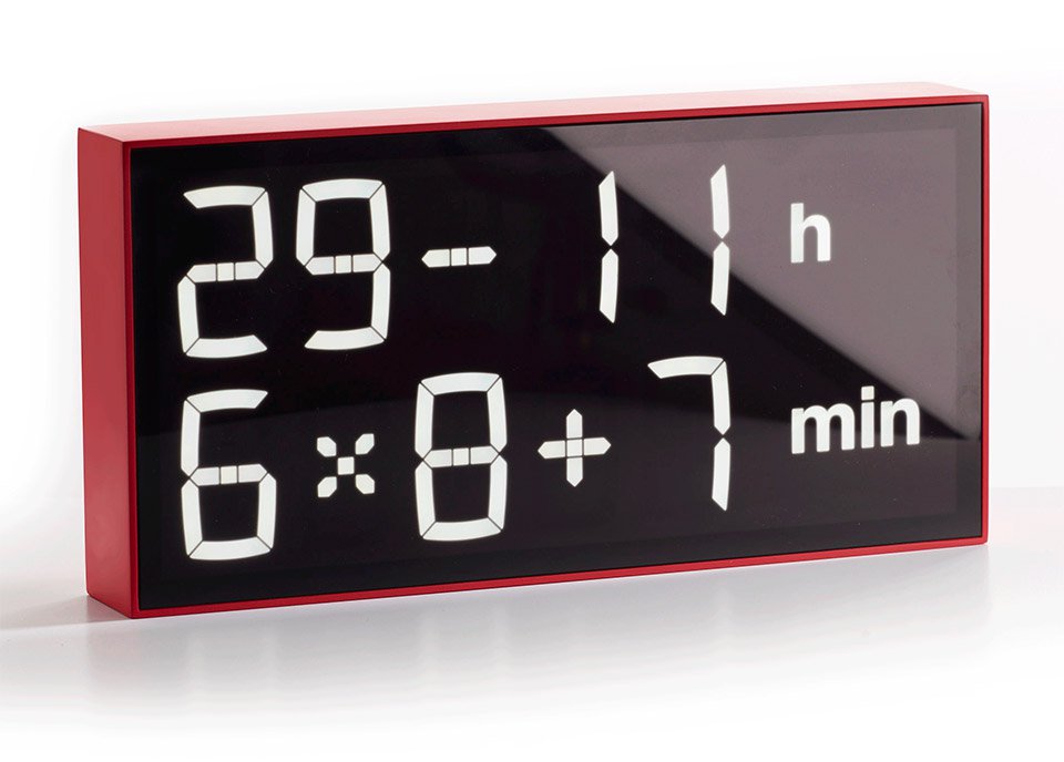 Har du problem med att räkna? Då är Albert Clock, en vägg- eller bordsklocka av designern Axel Schindlbeck perfekt för dig. På ett diskret sätt hjälper det dig att lära dig matematik. En digital klocka visar inte den exakta tiden, men det är en lösning på en matematisk ekvation. Att lära sig matematik har aldrig varit så roligt.