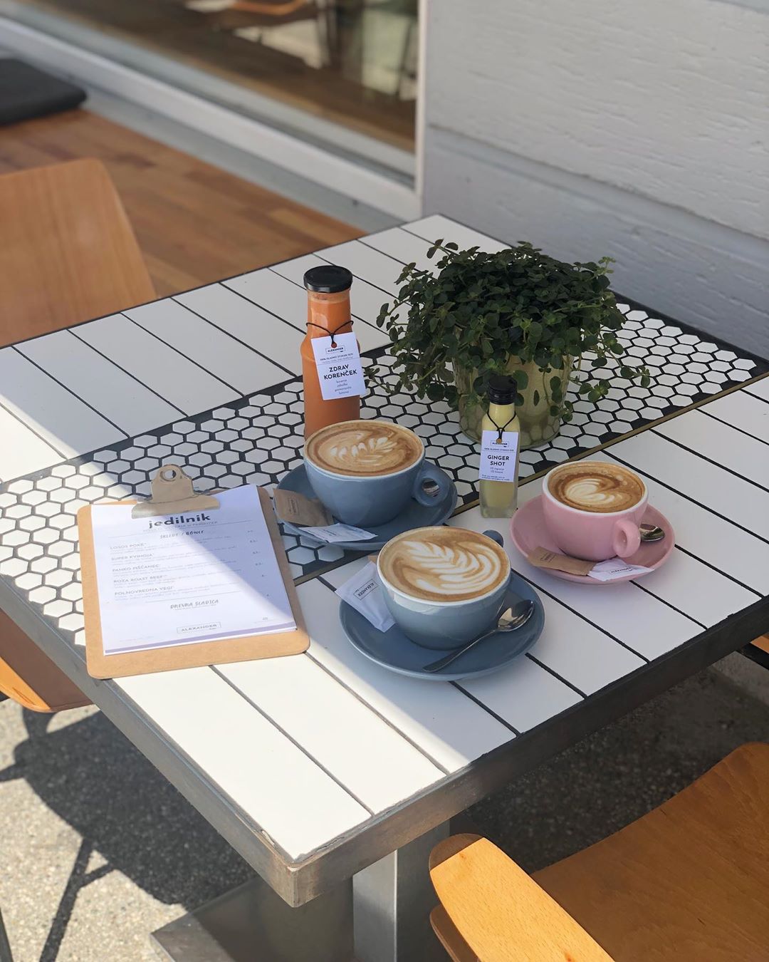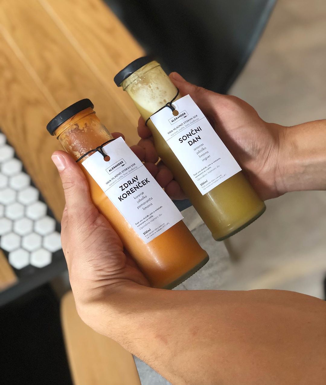 Alexander Bistro är, som vi redan har nämnt, ett extremt personligt projektt. Och så är erbjudandet. Det finns inget reklammaterial i baren, inte heller karsed-erbjudandet lokala och inhemska. De letar alltid efter kvalitet och en historia. Till exempel kallpressar de färska varje morgon 100% naturliga juicer inget tillsatt socker. Några av dem finns i det ordinarie utbudet, några är begränsade upplagor som skapas utifrån tillgång till färska råvaror. Det är till exempel en försäljningssuccé ingefärashot (100 % naturlig kallpressad ingefära och 100 % naturlig kallpressad citron), som har varit känt utomlands i decennier som en hälsosam uppiggande eller immunförstärkare lyft. Deras kaffe rostas också efter överenskommelse med lokala mikrorosteringar. De lanserades så nyligen rosa latte, rosa kaffe, som mottas oerhört väl. Allt tillagas i deras kök, ingen dryck tillagas med förberedda pulver eller konstgjorda siraper, samt vinlistan är lokal.