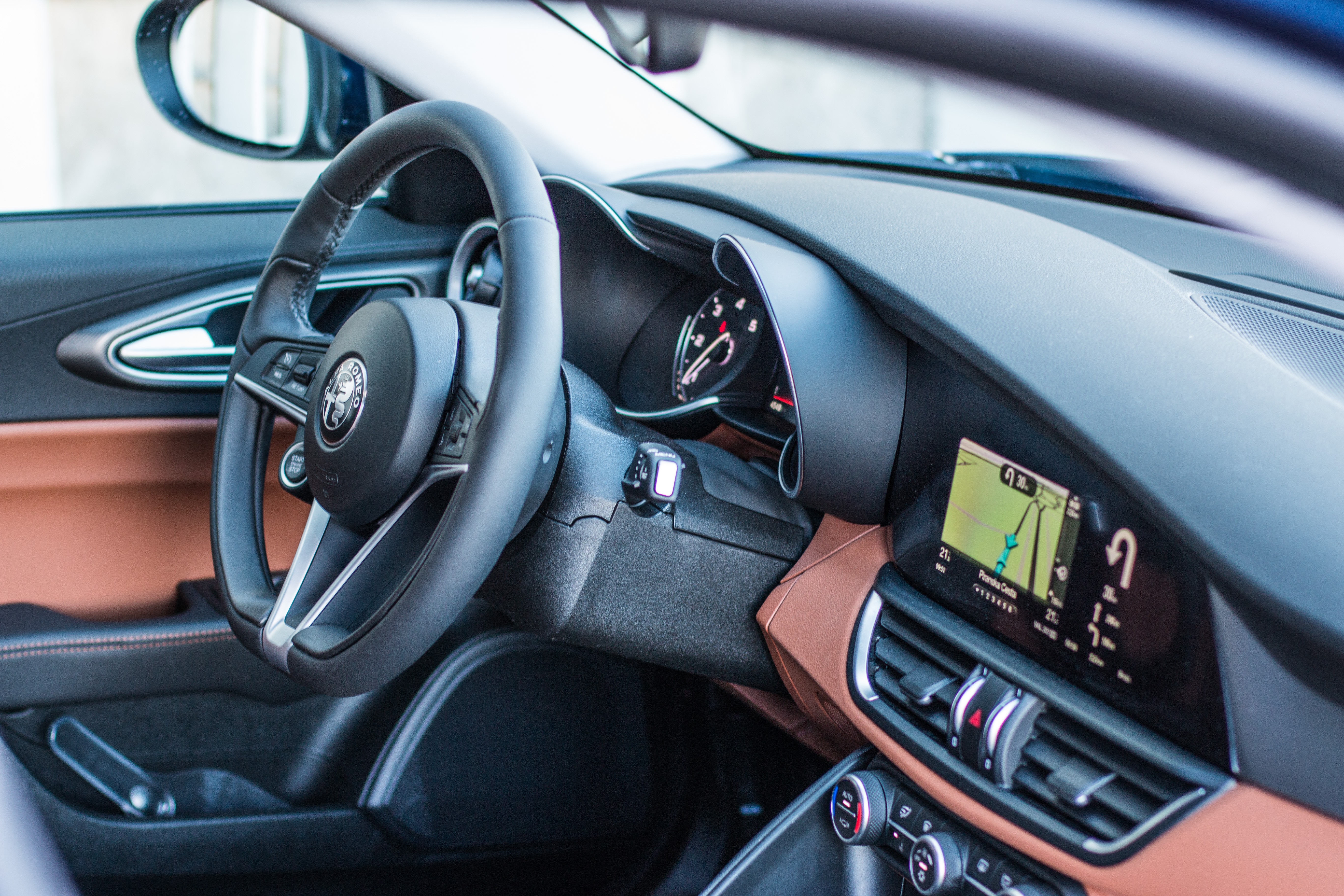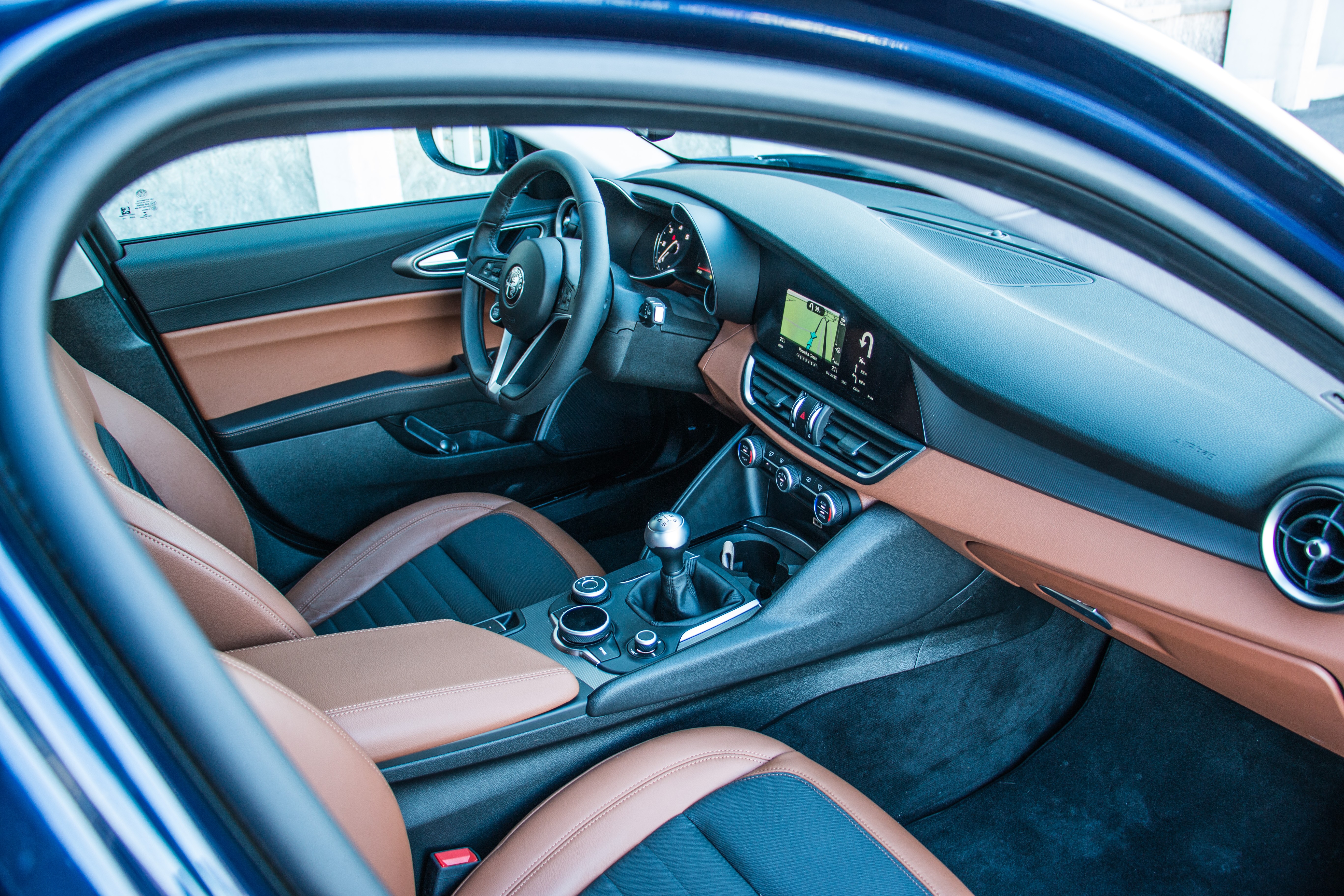 Giulia je tako zlahka najlepši avtomobil v razredu, ki zgodbo o lepi zunanjosti uspešno prenese v notranjost. Tudi tu Giulia deluje ošabno in s kakovostnimi uporabljenimi materiali precej vrhunsko. A tudi na račun zunanje lepote je notranjost nekoliko manj prostorna kot pri konkurenci. Posebej zanimiv fenomen je prtljažni prostor, ki deluje majhno, a podatki o litrih pokažejo, da ima identično prostornino kot najbližja konkurenca – Audi A4 och BMW 3-serie.