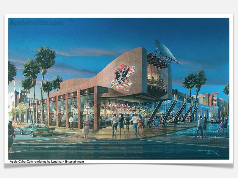Bakom en jätte som Apple finns det säkert en hel del idéer och projekt som (ännu) inte har förverkligats. Bland dem finns också idén om en kedja av cybercaféer, som skulle starta 1996.