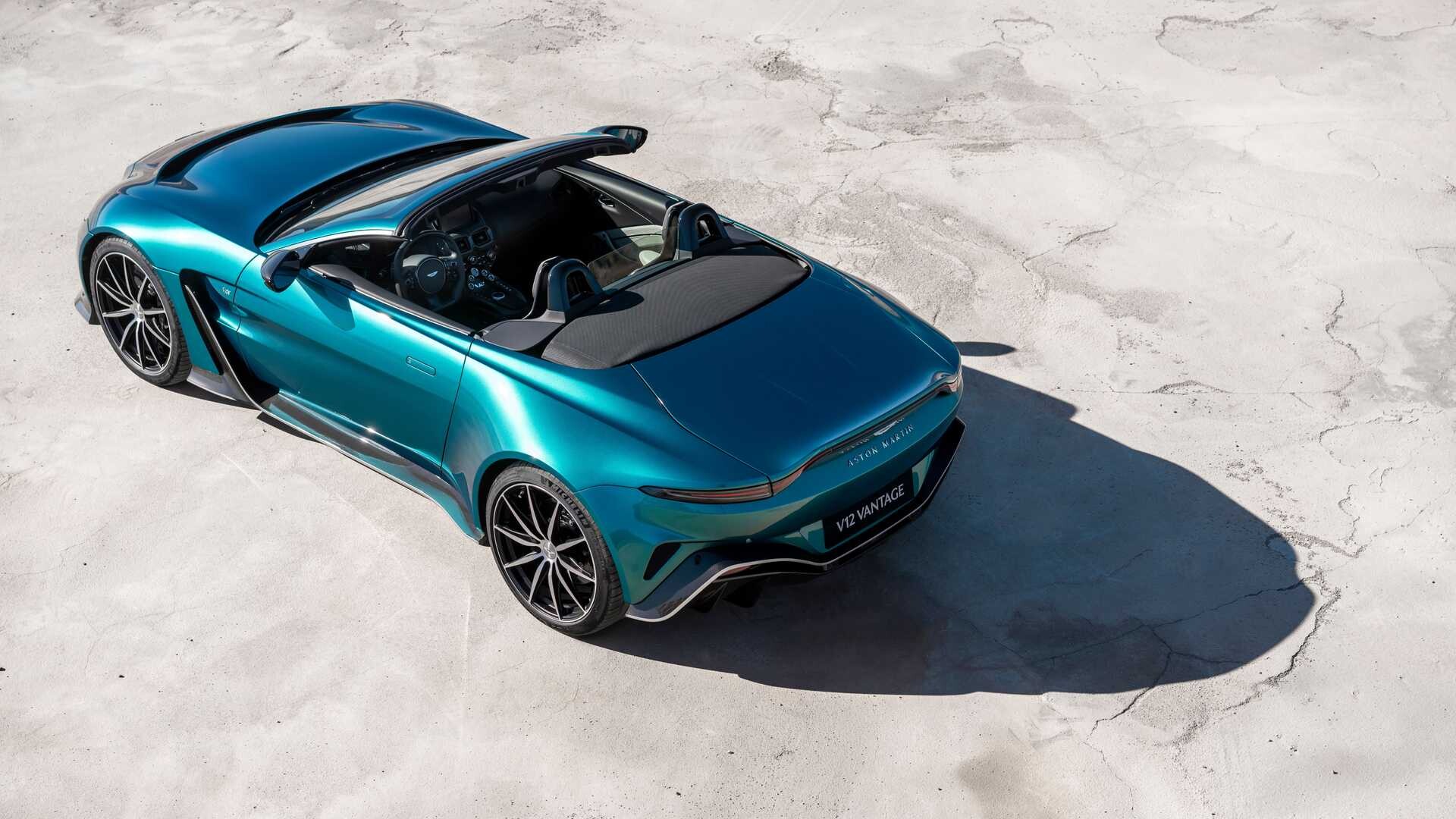 Förutom det avtagbara taket är skillnaden mellan cabriolet och coupén borttagningen av den stora luftriktaren, som kunderna fortfarande kan överväga mot en extra avgift. Det mesta av karossen är gjord av kolfiber eller andra lätta kompositer. Jämfört med versionen som har en 8-cylindrig motor är karossen på V12-versionen bredare med 4 cm. Ett fullständigt stopp säkerställs av keramiska bromsar av högsta kvalitet, som är gömda bakom 21-tums sådana fälgar. Interiören är som i coupéversionen av Vantage-modellen.