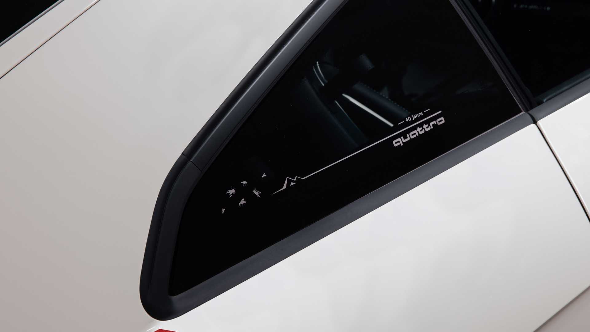 Audi TT RS 40 år av Quattro kommer i Alpine White och s speciella klistermärken, inspirerad av Audi Sport Quattro S1 som vann Pikes Peak-loppet 1987 med Walter Röhrl vid ratten. För en ännu bättre visuell effekt kompletteras dekalerna på huven, taket och bakskärmarna med glanssvarta accenter och en huvventil i kolfiberlook.