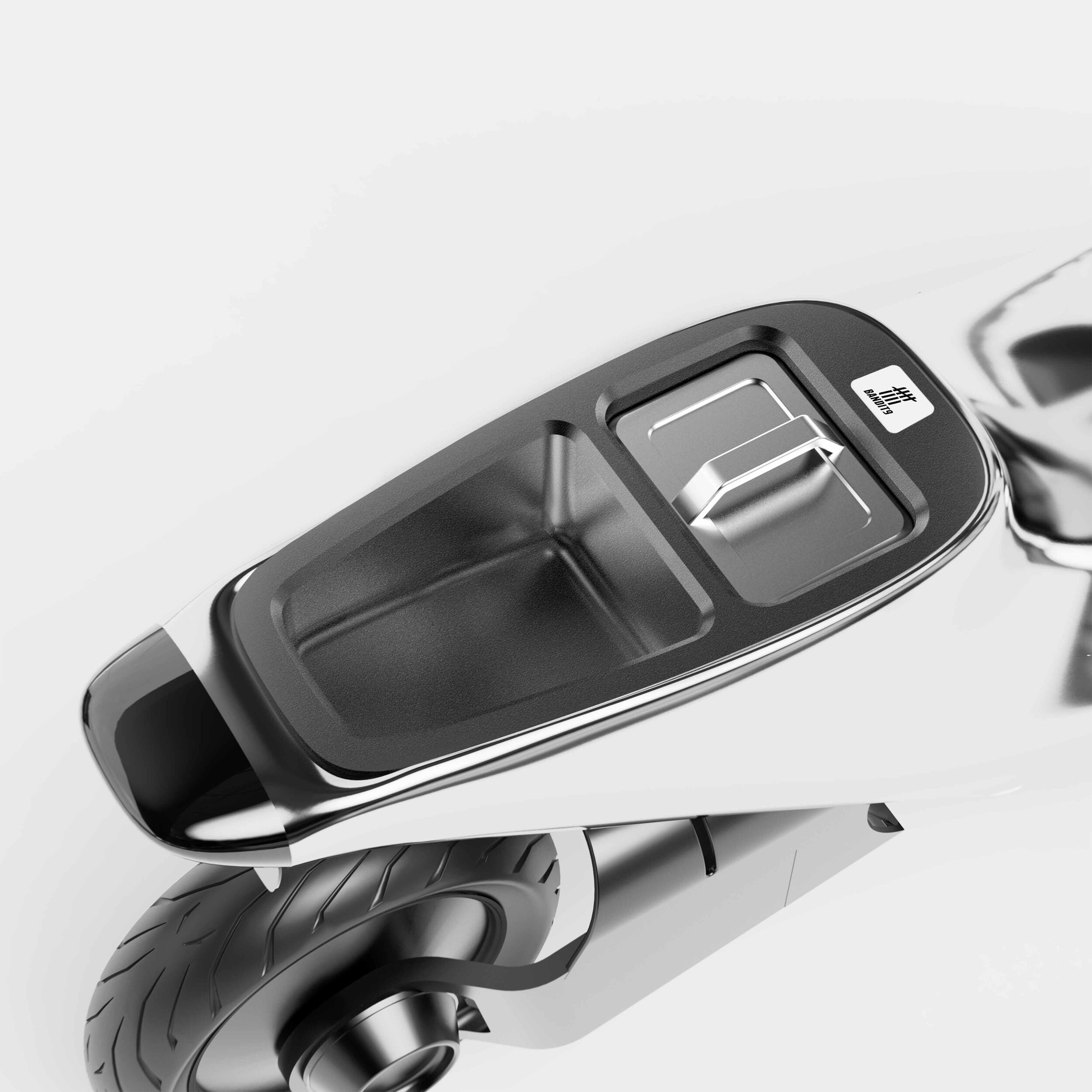 Elektrisk skoter Bandit9 Nano imponerar med sin futuristiska bild. Karossen är helt innesluten i den främre delen av skotern, medan ryggen sträcker sig in i sätet och svängarmen. Polerat Rolex 904L rostfritt stål har använts i dess konstruktion, vilket gör skotern ännu mer polerad och skapar en mer premiumkänsla.