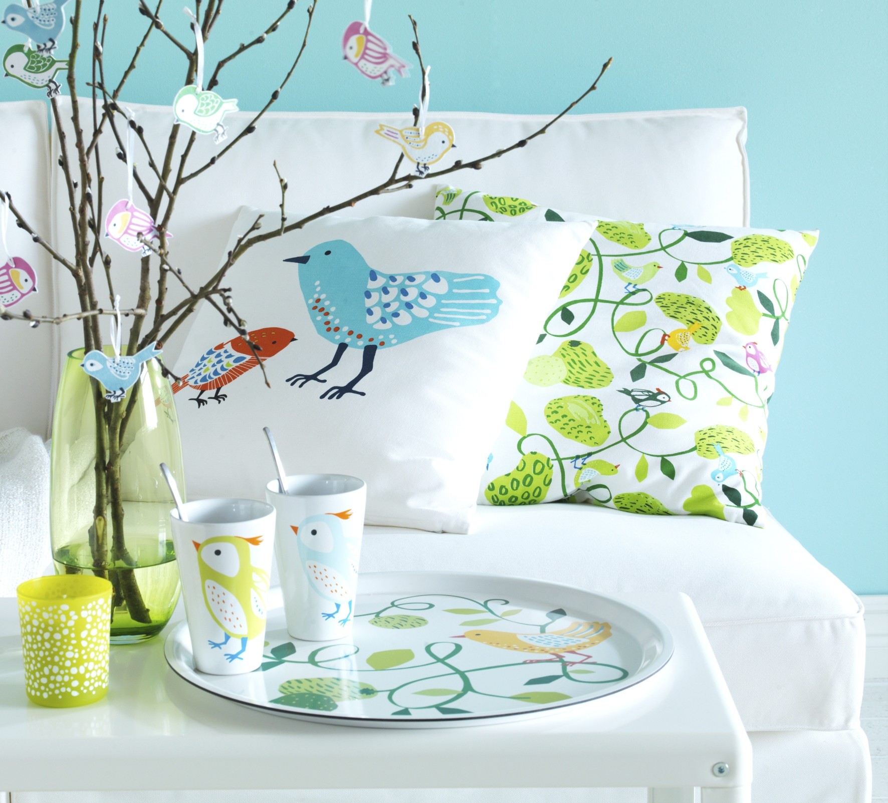 På Ikea so prihajajočemu prazniku primerno predstavili omejeno velikonočno kolekcijo dodatkov za dom PÅSKYNDA, ki očara s spomladanskimi barvami in prikupnimi motivi ptičkov. Pladnji, blazine, skodelice, predpasniki, kuhinjske krpe, kozarci in prtički iz omejene serije našemu domu pričarajo velikonočno atmosfero, ki je kot nalašč za sprejem gostov. Tem bomo nasmeh na obraz pričarali tudi s prikupnimi podstavki za pirhe, ki kuhana jajca spremenijo v prisrčne ptičke, in obeski v obliki ptičkov, ki jih lahko razobesimo povsod po stanovanju. Preden se odpravimo po nakupih, na Ikeini spletni strani preverimo, če je omejena kolekcija na voljo tudi v Ikei, ki jo imamo namen obiskati, saj Ikea s prisrčno kolekcijo ni založila vseh svojih trgovin.