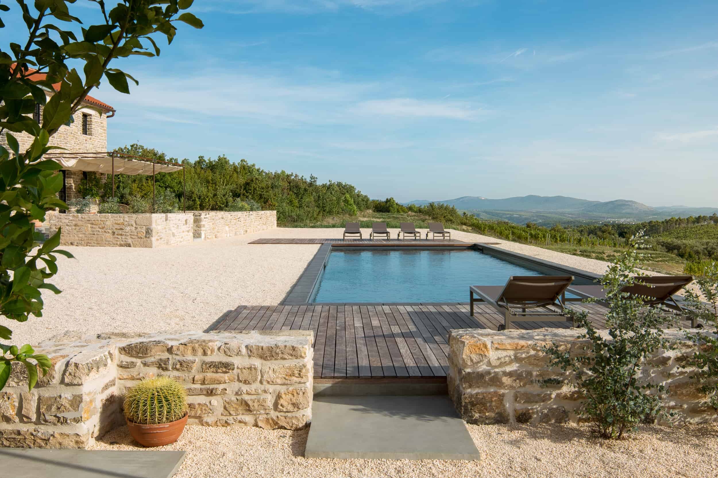Ruinerna av tidigare stenvingårdshus har därmed fått en ny, modern bild, och idag bjuder de in gäster från hela världen i sin lyxiga famn. Hisnande är inte bara omgivningarna bevuxna med olivträd och vingårdar, utan också villornas inredning, signerad av de bästa kroatiska inredningsarkitekterna. Feer är utformade på ett miljövänligt sätt, var och en har sin egen vattenkälla, och de genererar energi med hjälp av solceller.