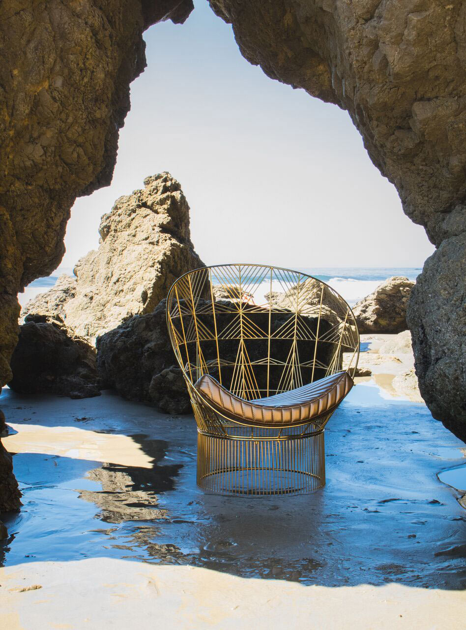 Los Angeles-baserade design- och tillverkningsföretag, Bend Goods, har precis presenterat en ny vilstol som ser ut som en påfågel. Det är en uppdaterad version av den ikoniska korgstolen från 1970-talet. Denna gång ersattes pilflätningen av ett geometriskt mönster av metall, vilket ger produkten en frisk bris och en unik touch.