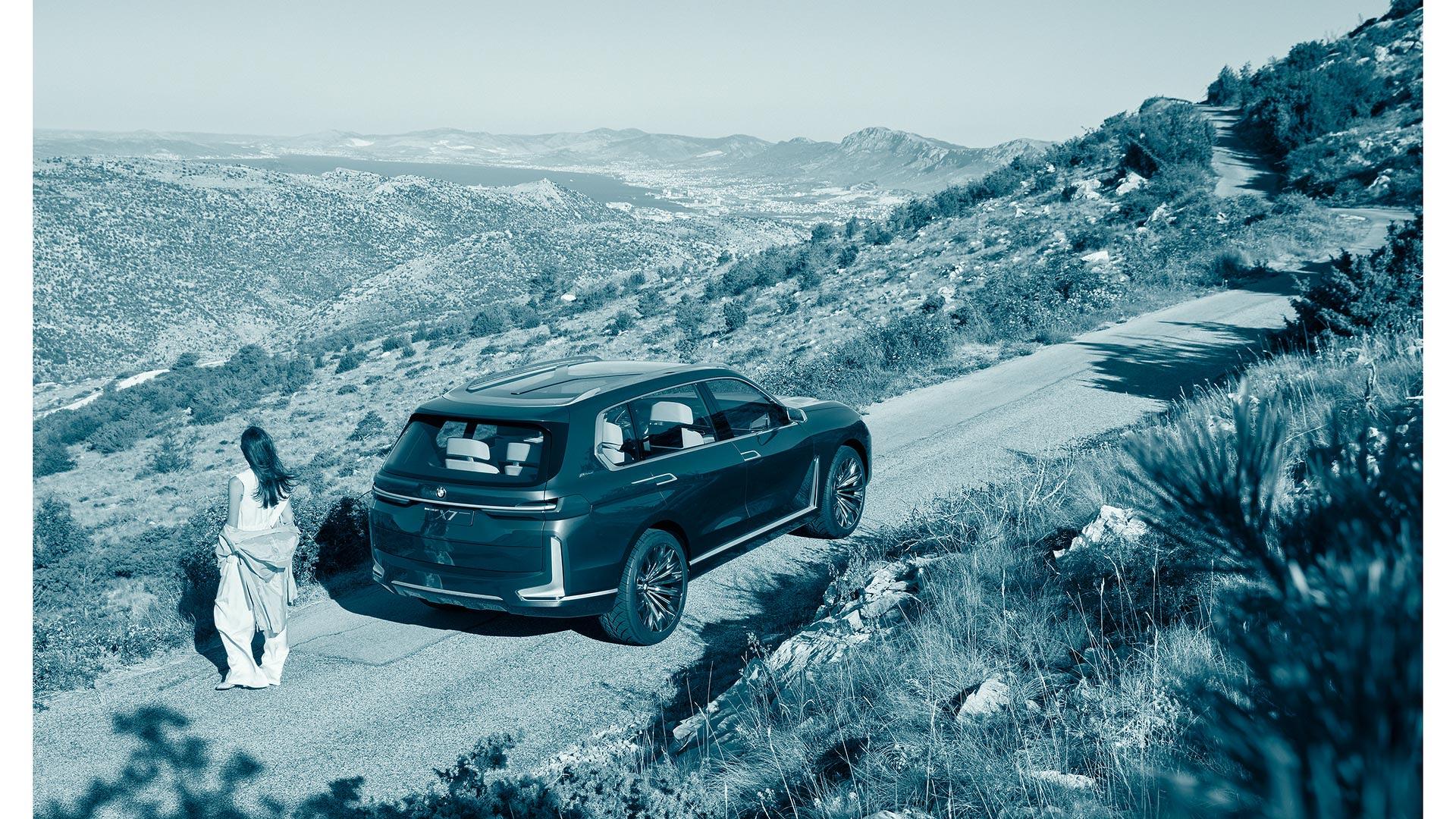 Streha je deljena med glasytor och nekakšnim Y-profilom, kar omogoča izredno osvetljenost notranjosti. Ob strani je moč opaziti odprtino za priklop na električno omrežje, kar nakazuje, da gre po vsej verjetnosti za plug-in hybrid. Kakšni bodo sicer pogonski sklopi, za zdaj še ni znano. Produkcijska različica se bo pripeljala i letu 2018. Sliši se tudi govorice, da BMW načrtuje izdelavo superluksuzne različice X7, kjer bi odstranili zadnje sedeže in tako ustvarili ogromno prostora za potnike na preostalih zadnjih sedežih. Koncept je prijetno presenetil, zato tako že nestrpno pričakujemo cestno različico novega BMW-ja X7.