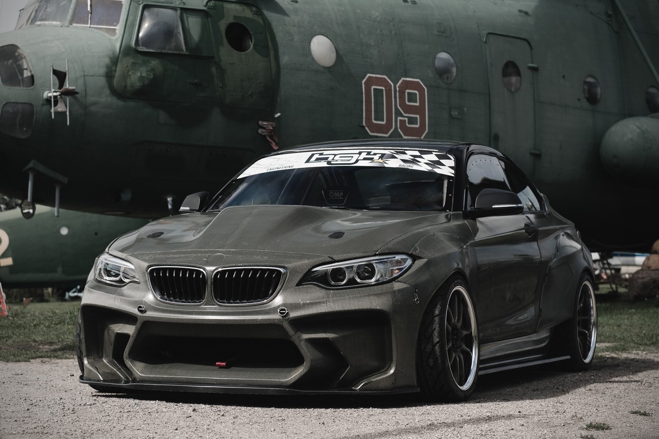 Den lettiska ombyggnadsgruppen HGK Motorsport är inte främmande för ombyggnader av BMW-modeller. Sist men inte minst tillverkar de racerbilar åt dem. Praktiskt taget varje modell har lagt sig under sin kniv, bara Series 2 har hittills undvikit sin operationssal. Med BMW M2 F22 Eurofighter-modellen har de nu korrigerat även detta 'misstag'. Och på vilket sätt. Med en kevlar- och kolfiberklädd glidbeast som spottar ut 820 hästkrafter! Den är gjord enligt reglerna för Formel D Championship (Drift).